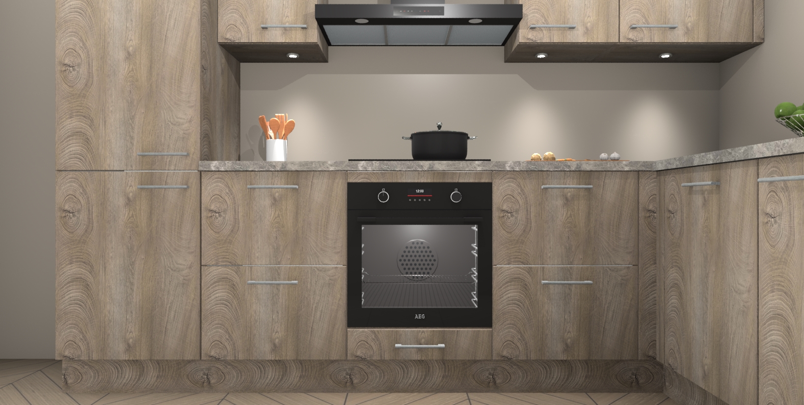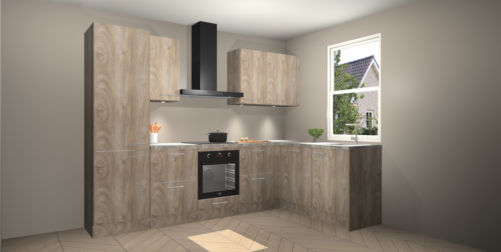 Maak kennis met de trendsettende en luxe Cantaro Eiken keuken Bazel! Deze uitzonderlijke keuken van Duitse kwaliteit is stijlvol, modern en perfect om elk huis mee op te fleuren. De binnenkant van de kasten worden meegenomen in een bijpassende kleur om een samenhangende eigentijdse esthetiek te voltooien. U zult dol zijn op hoe uw pas gerenoveerde keuken eruitziet met de Cantaro Eiken editie!