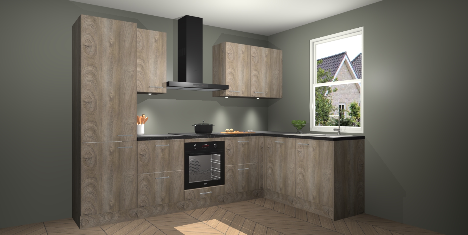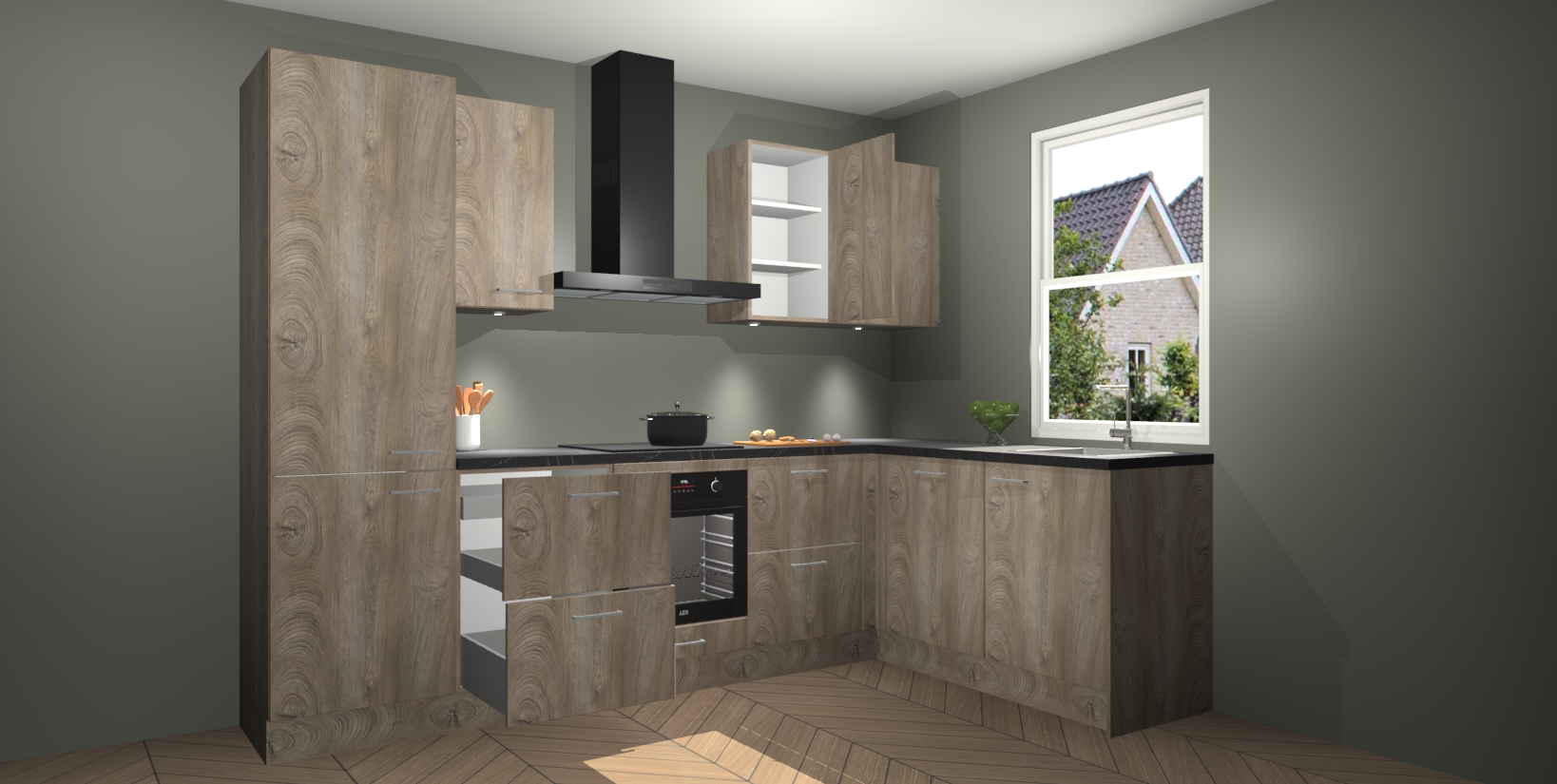 Maak kennis met de trendsettende en luxe Cantaro Eiken keuken Bazel! Deze uitzonderlijke keuken van Duitse kwaliteit is stijlvol, modern en perfect om elk huis mee op te fleuren. De binnenkant van de kasten worden meegenomen in een bijpassende kleur om een samenhangende eigentijdse esthetiek te voltooien. U zult dol zijn op hoe uw pas gerenoveerde keuken eruitziet met de Cantaro Eiken editie!