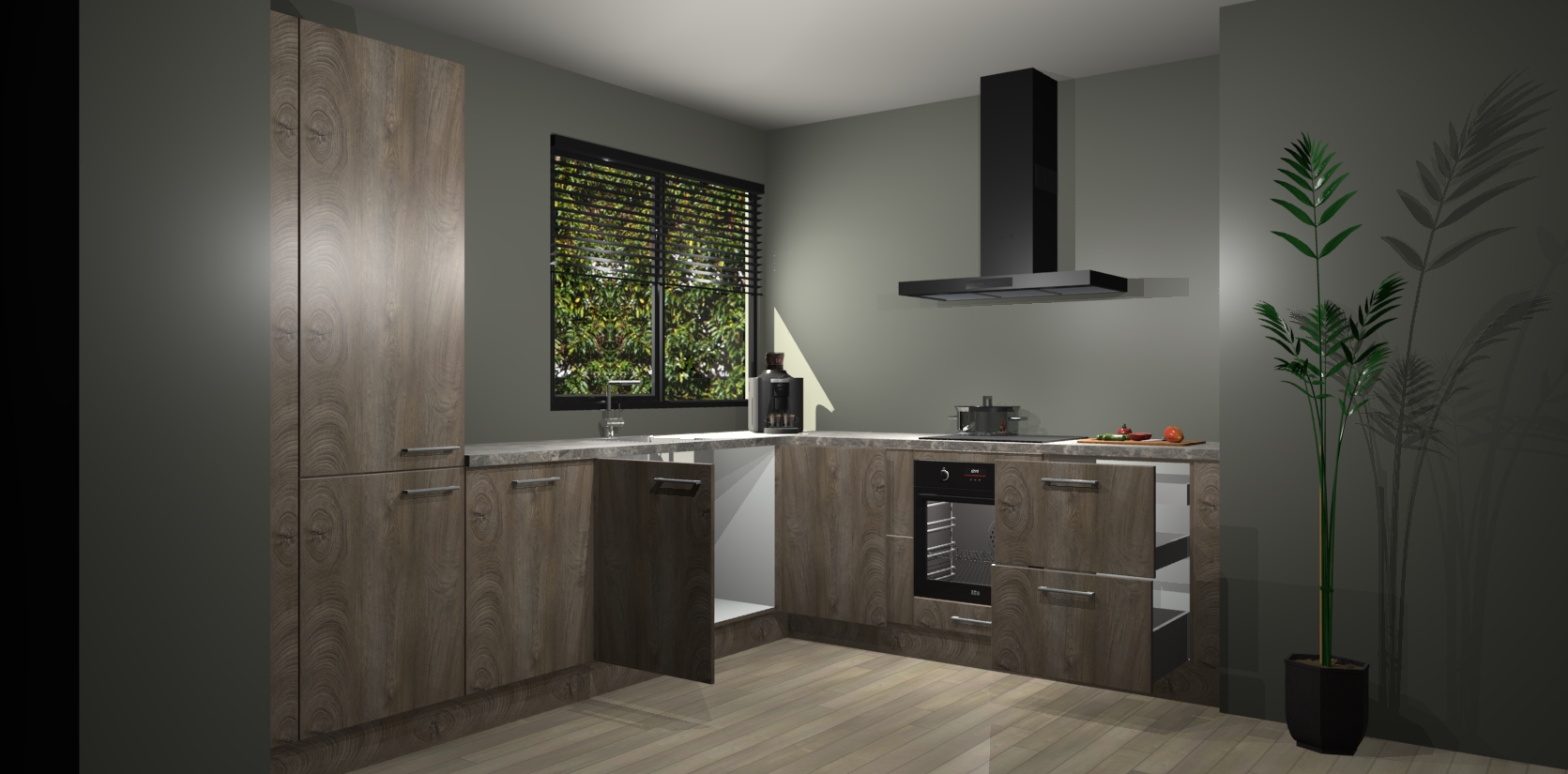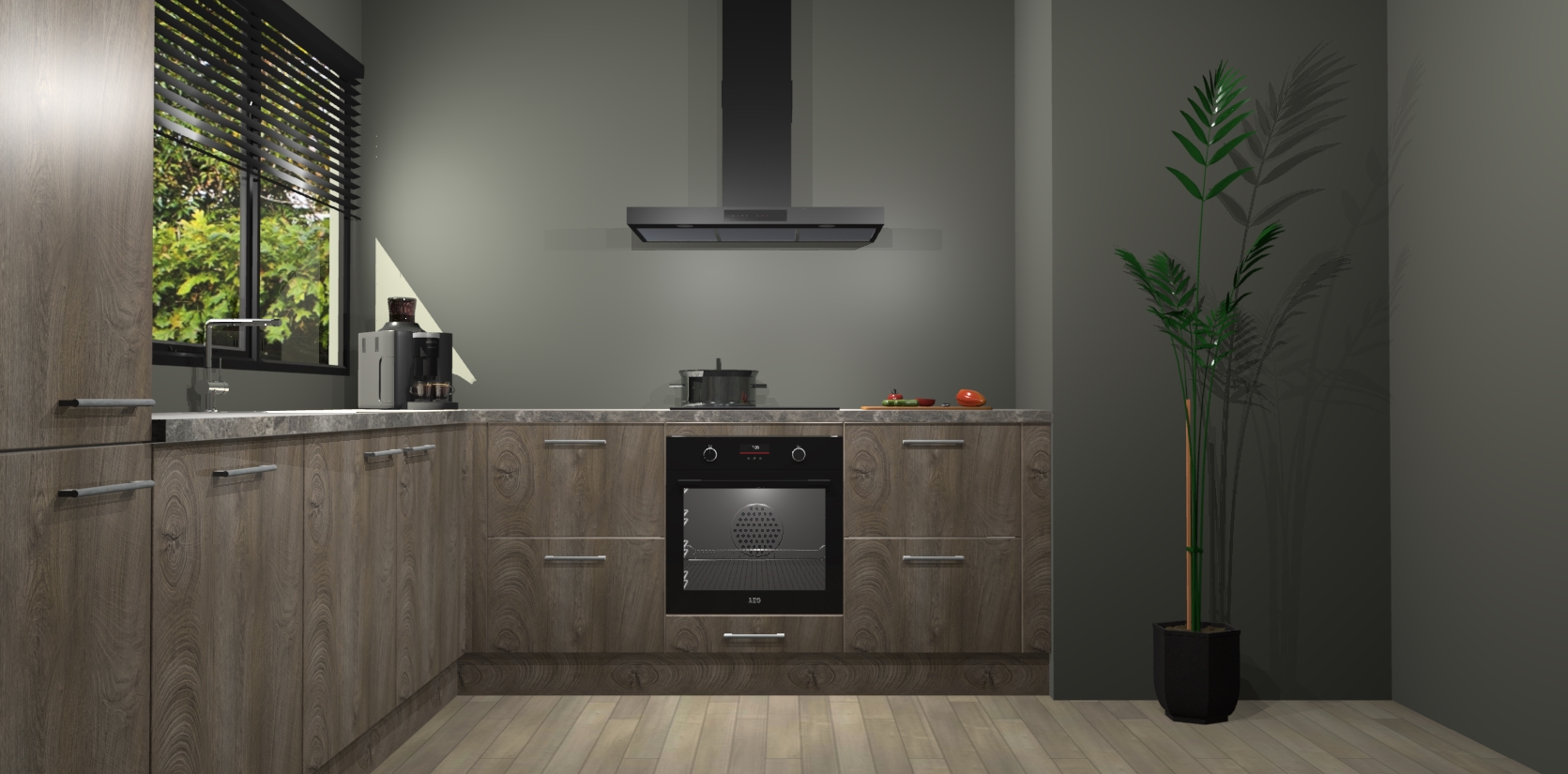 Met een modern, tijdloos design en ruime opslagruimte, zult u zich in no-time thuis voelen in uw nieuwe keuken. Uw leven wordt eenvoudiger met de soft-close deuren die voor het ultieme stille comfort zorgen - geen geluid dat u stoort terwijl u kookt. Ook is de keuken voorzien van 5 ingebouwde apparaten: een oven, inductie kookplaat, afzuigkap, vaatwasser en koelkast. Deze kunnen gemakkelijk na bestelling worden bijgewerkt naar AEG - waardoor uw luxe ervaring compleet is.