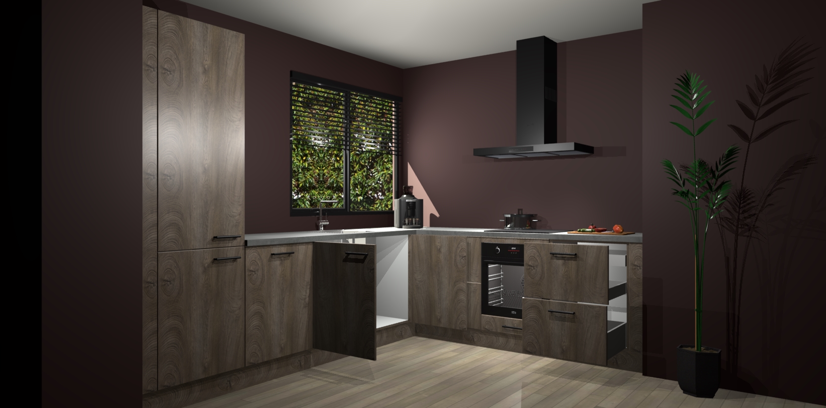 Met een modern, tijdloos design en ruime opslagruimte, zult u zich in no-time thuis voelen in uw nieuwe keuken. Uw leven wordt eenvoudiger met de soft-close deuren die voor het ultieme stille comfort zorgen - geen geluid dat u stoort terwijl u kookt. Ook is de keuken voorzien van 5 ingebouwde apparaten: een oven, inductie kookplaat, afzuigkap, vaatwasser en koelkast. Deze kunnen gemakkelijk na bestelling worden bijgewerkt naar AEG - waardoor uw luxe ervaring compleet is.