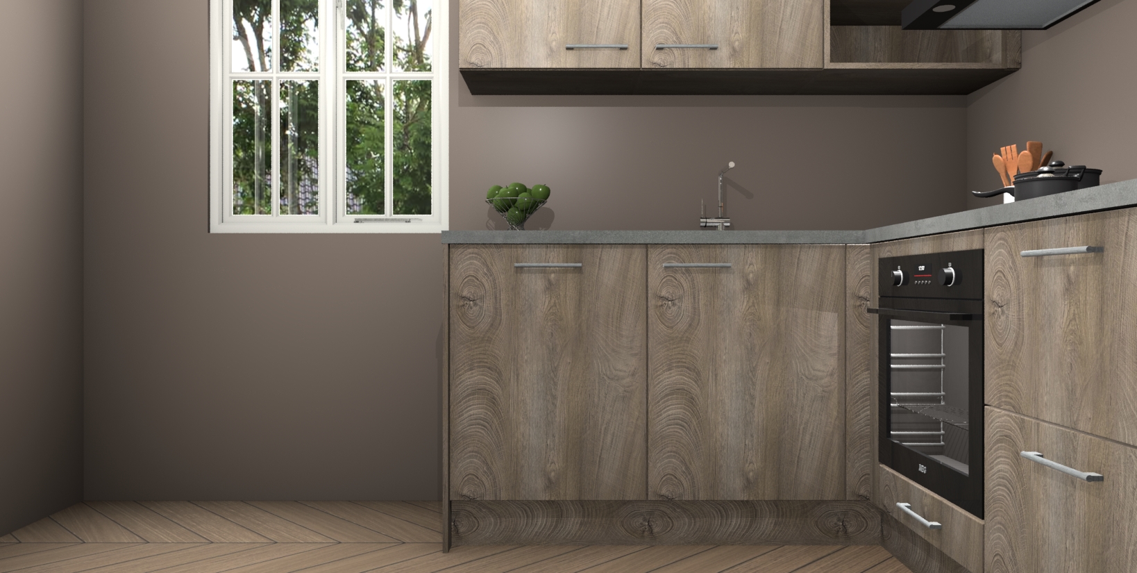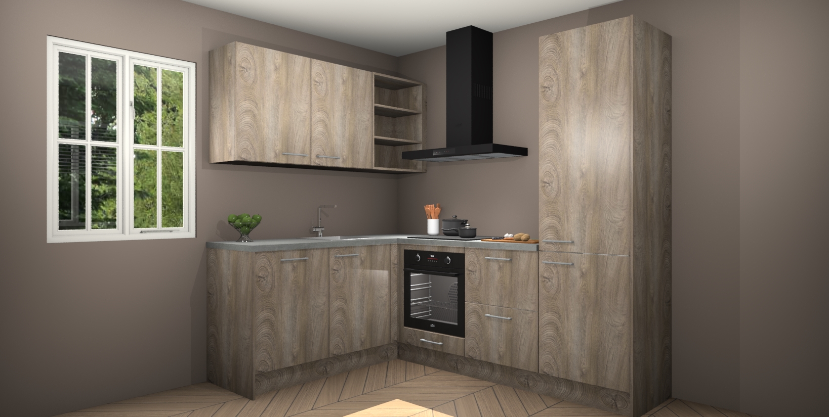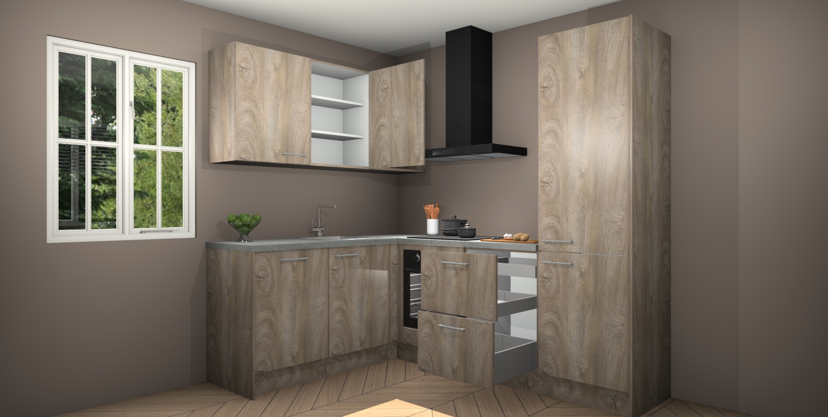 Maak kennis met de Cantaro Eiken keuken Boekarest, een moderne hoekkeuken waar al uw vrienden en familie jaloers op zullen zijn! Het verbluffende mooie ontwerp past in elk interieur en is een ideale keuze voor wie op zoek is naar een klassieke, maar verfijnde look.