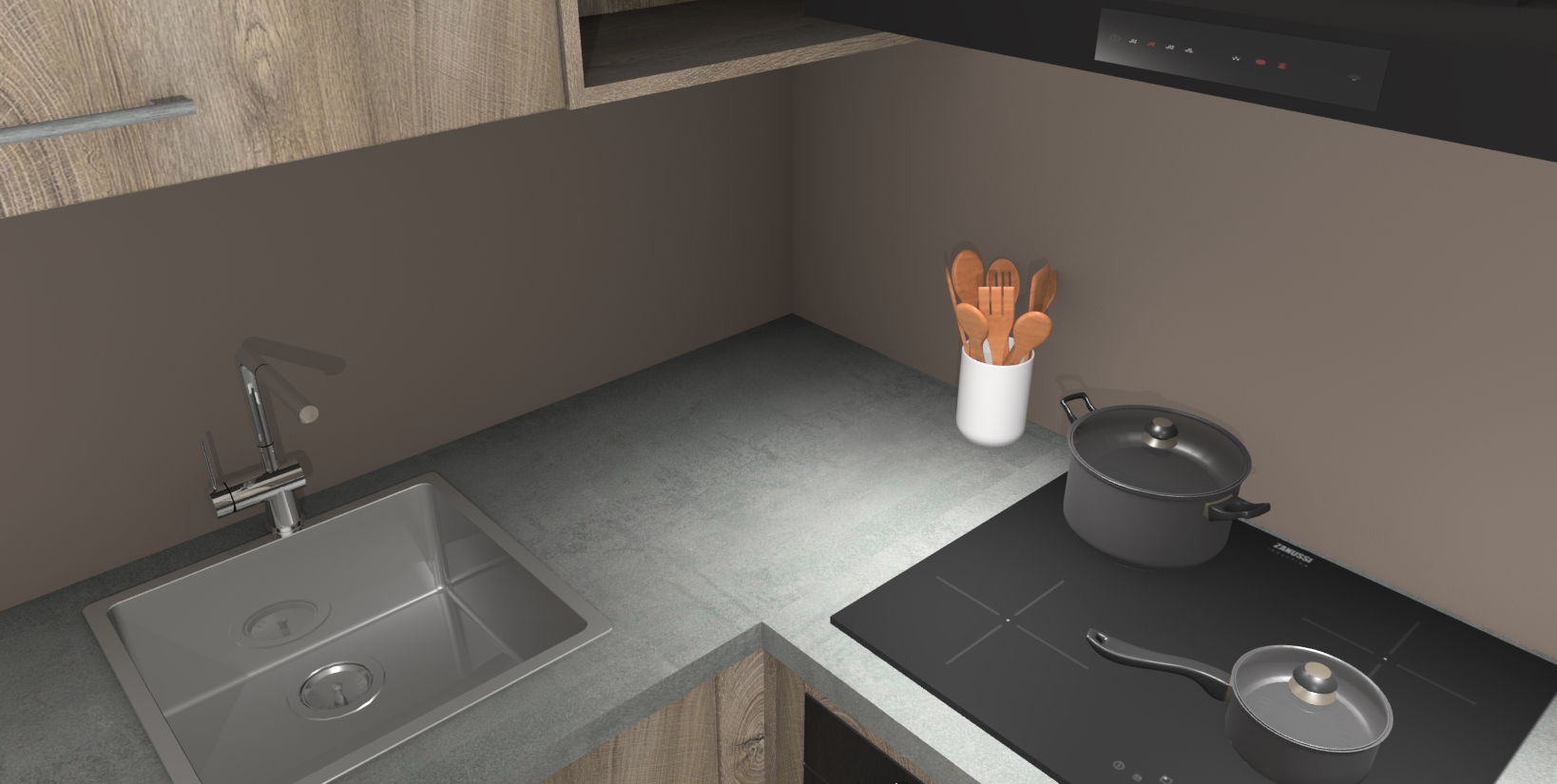 - Uitsparing van kookplaat, spoelbak en kraan dient u zelf te verzorgen.
