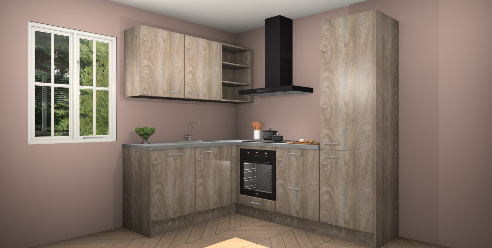 Maak kennis met de Cantaro Eiken keuken Boekarest, een moderne hoekkeuken waar al uw vrienden en familie jaloers op zullen zijn! Het verbluffende mooie ontwerp past in elk interieur en is een ideale keuze voor wie op zoek is naar een klassieke, maar verfijnde look.