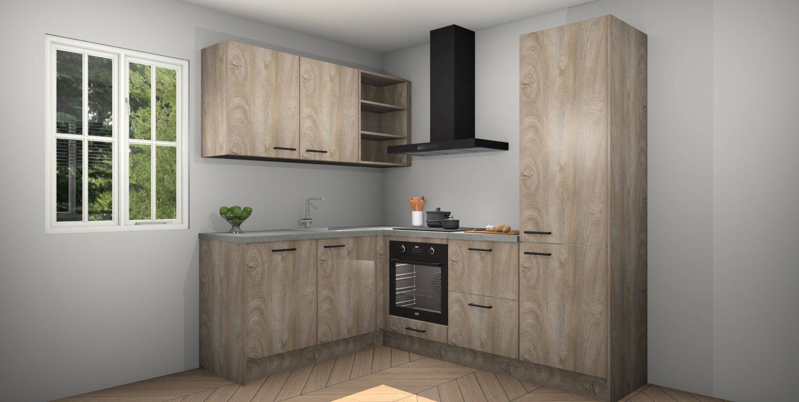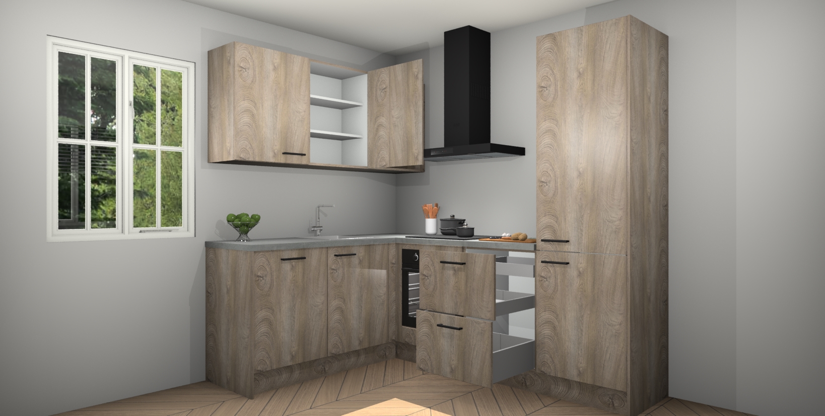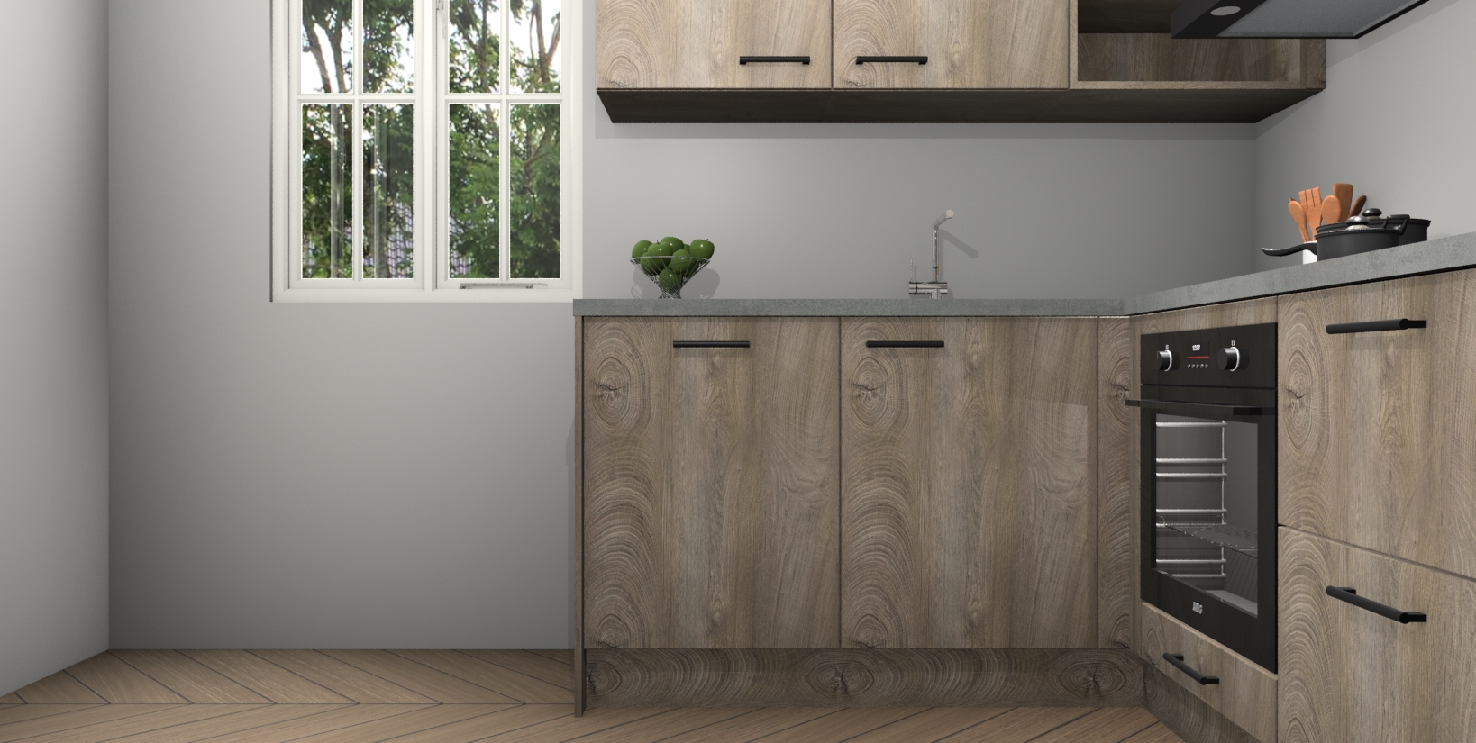 Maak kennis met de Cantaro Eiken keuken Boekarest, een moderne hoekkeuken waar al uw vrienden en familie jaloers op zullen zijn! Het verbluffende mooie ontwerp past in elk interieur en is een ideale keuze voor wie op zoek is naar een klassieke, maar verfijnde look.