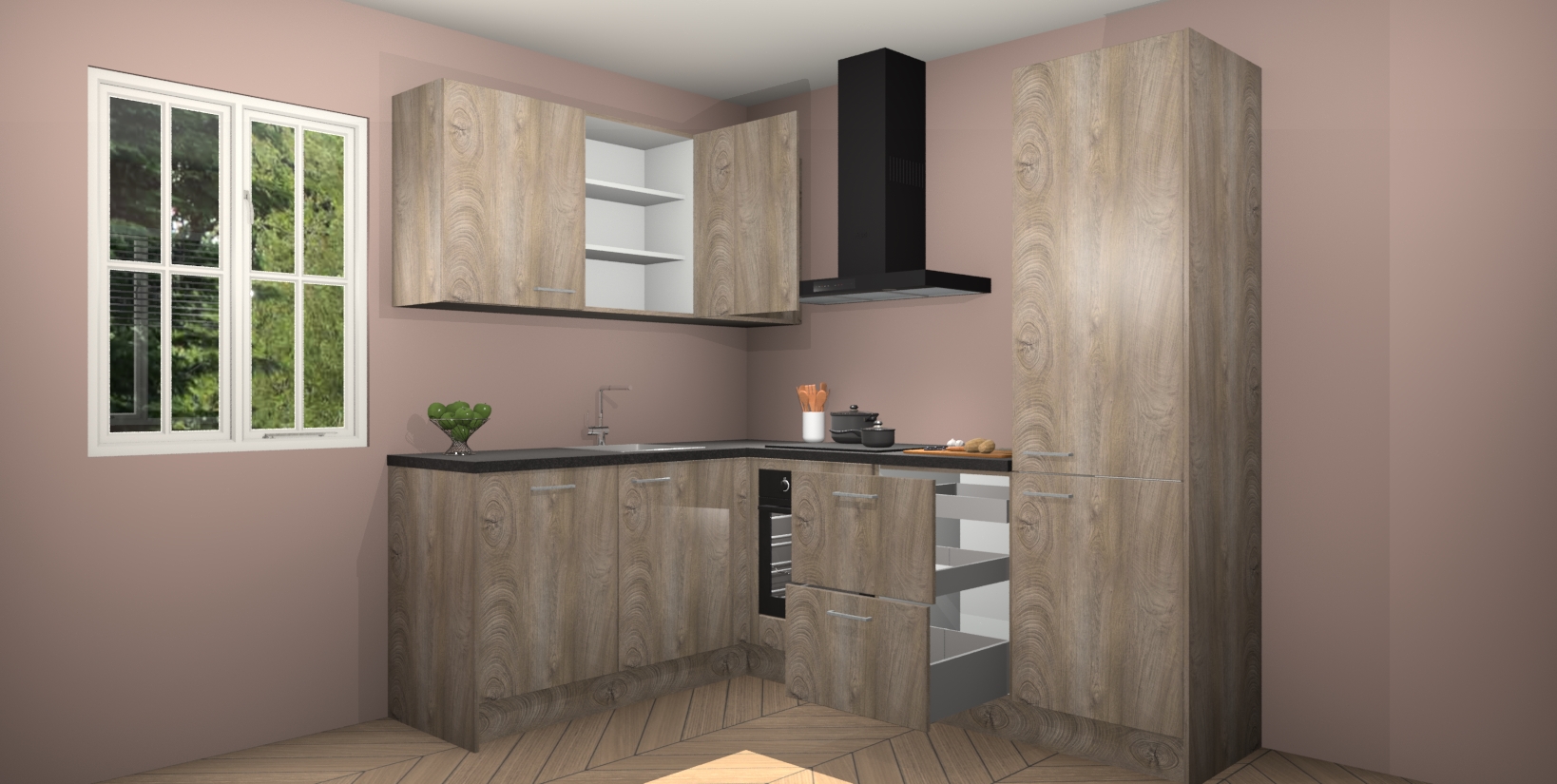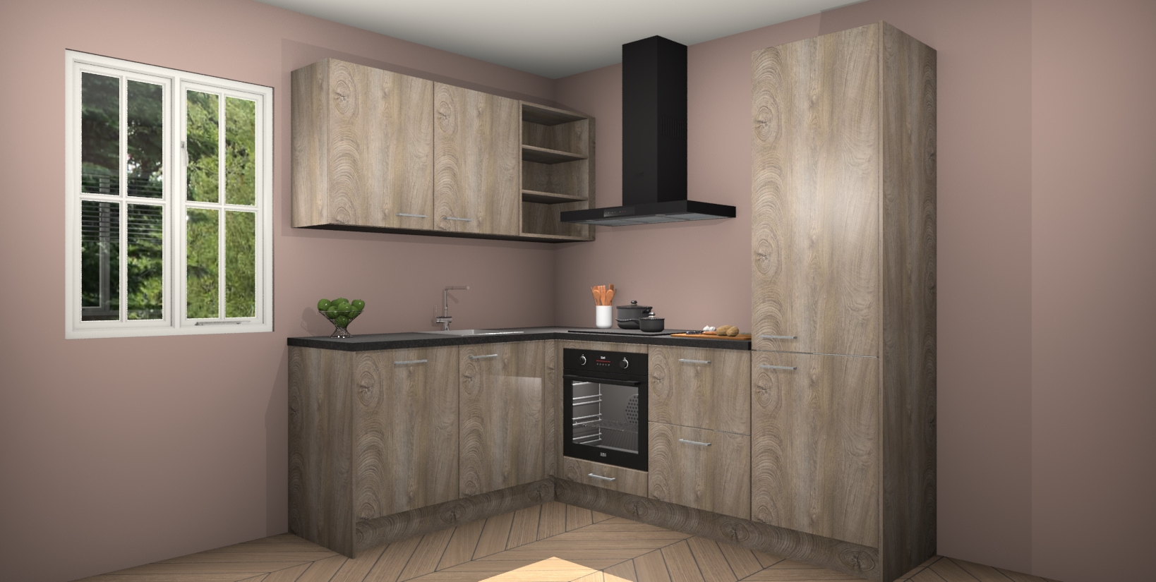 Maak kennis met de Cantaro Eiken keuken Boekarest, een moderne hoekkeuken waar al uw vrienden en familie jaloers op zullen zijn! Het verbluffende mooie ontwerp past in elk interieur en is een ideale keuze voor wie op zoek is naar een klassieke, maar verfijnde look.