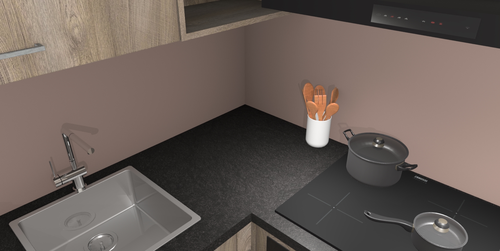 - Uitsparing van kookplaat, spoelbak en kraan dient u zelf te verzorgen.