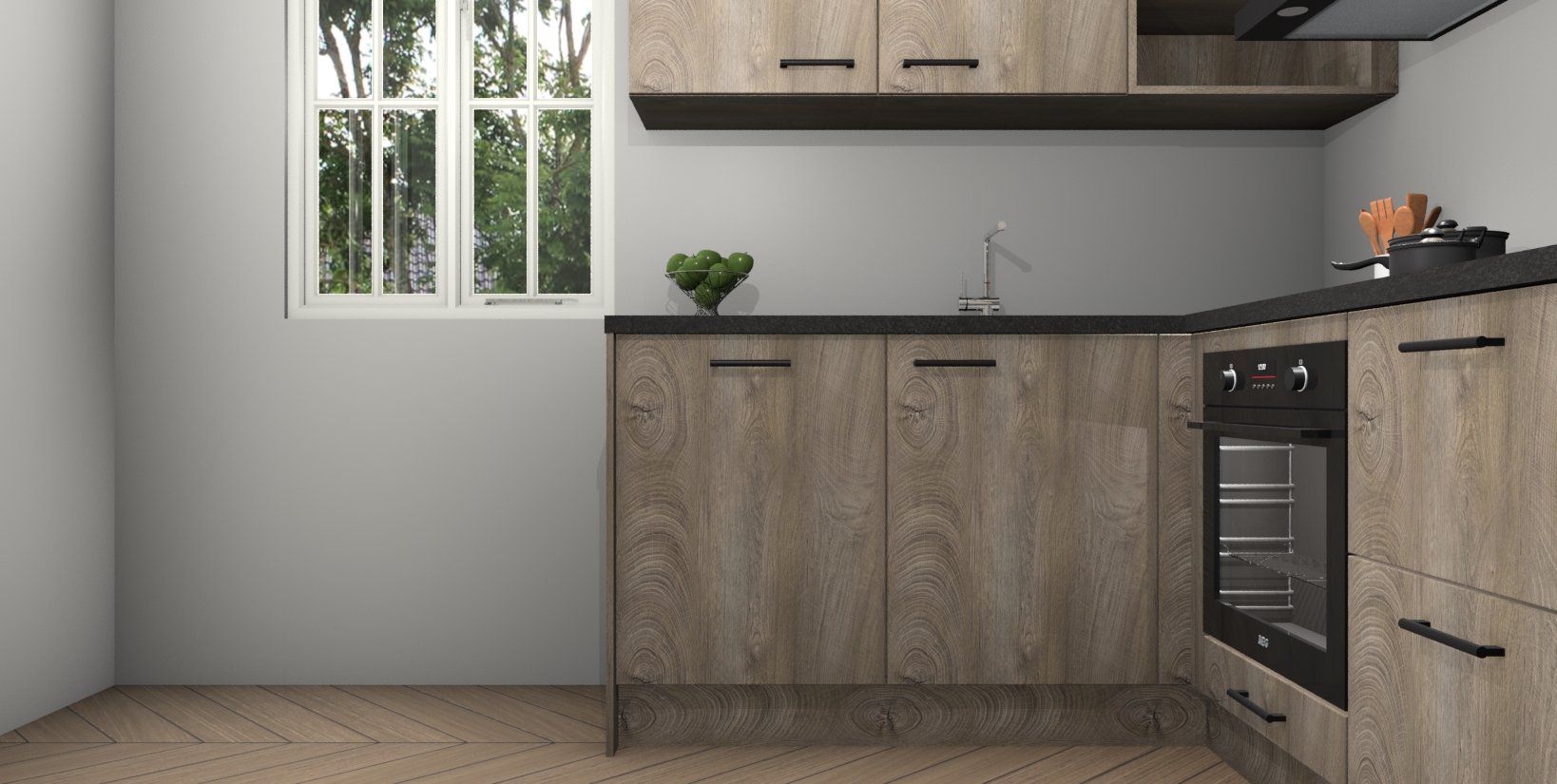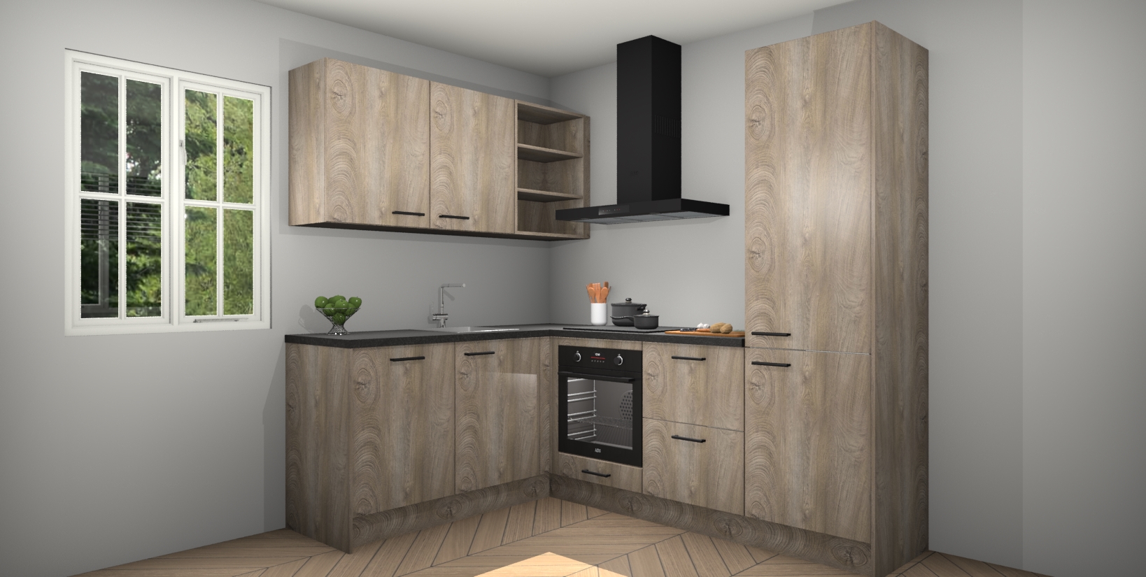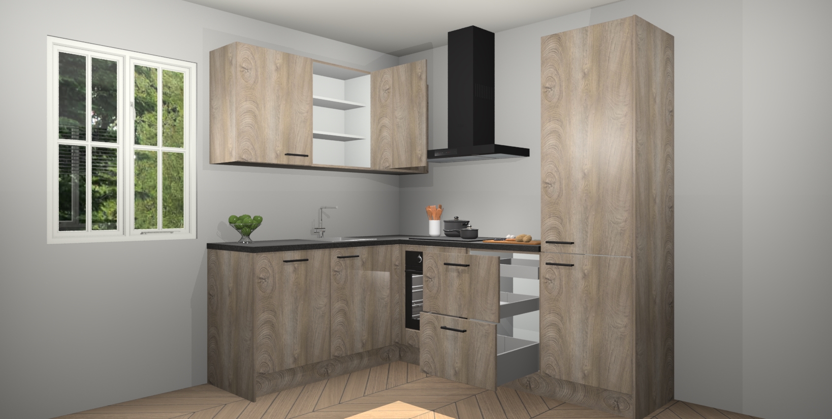 Maak kennis met de Cantaro Eiken keuken Boekarest, een moderne hoekkeuken waar al uw vrienden en familie jaloers op zullen zijn! Het verbluffende mooie ontwerp past in elk interieur en is een ideale keuze voor wie op zoek is naar een klassieke, maar verfijnde look.