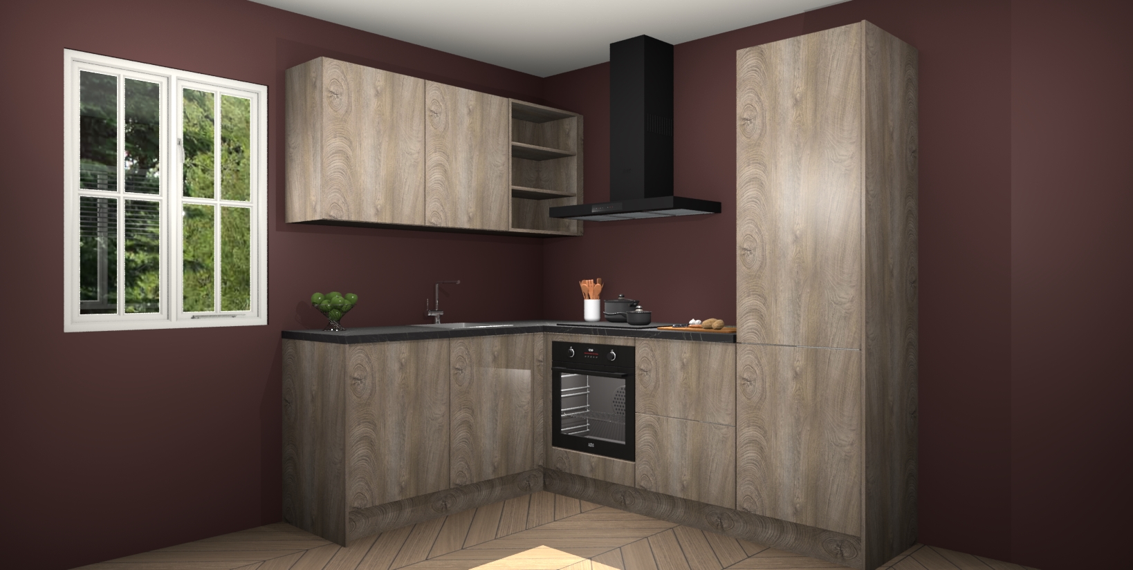 Maak kennis met de Cantaro Eiken keuken Boekarest, een moderne hoekkeuken waar al uw vrienden en familie jaloers op zullen zijn! Het verbluffende mooie ontwerp past in elk interieur en is een ideale keuze voor wie op zoek is naar een klassieke, maar verfijnde look.
