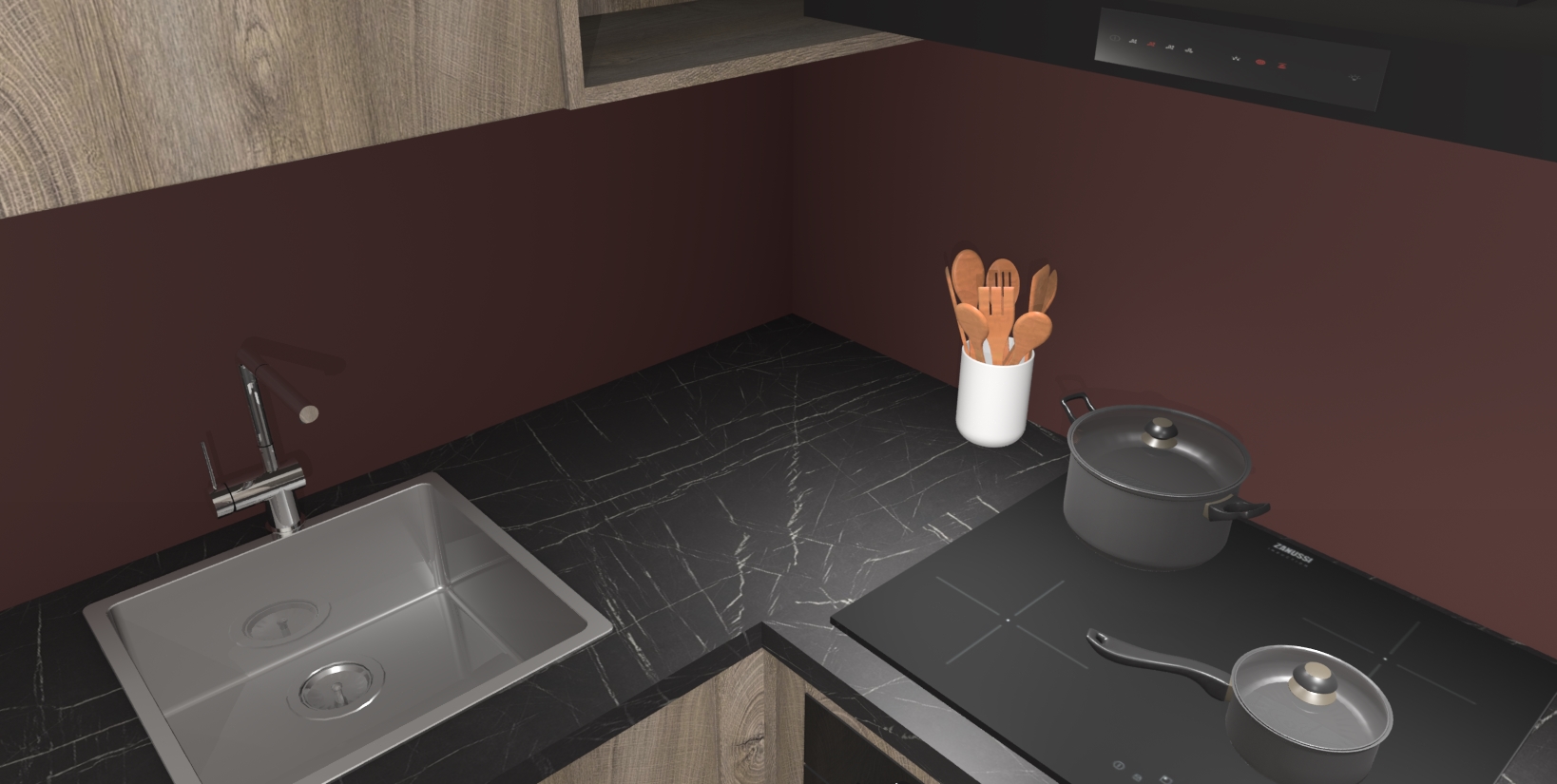 - Uitsparing van kookplaat, spoelbak en kraan dient u zelf te verzorgen.