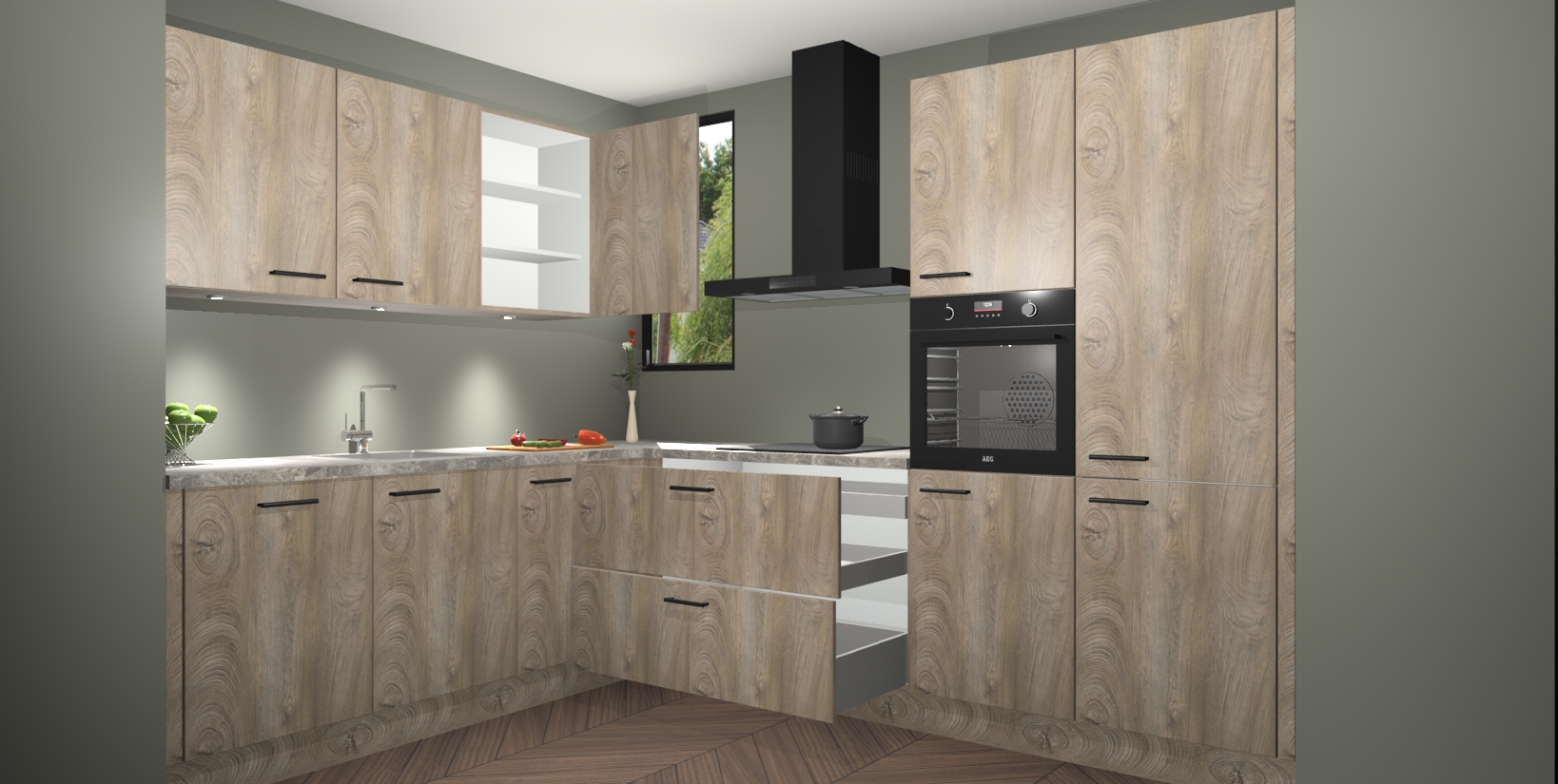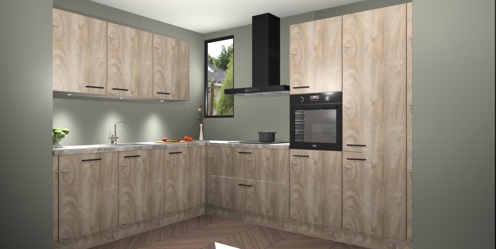 De ruime opbergruimte van dit model maakt het bereiden van voedsel en het gebruik van apparaten snel en gemakkelijk. Het beste van alles is dat het wordt geleverd met vijf inbouwapparaten: een oven, inductiekookplaat, afzuigkap, vaatwasser en koelkast - die allemaal gemakkelijk kunnen worden opgewaardeerd naar AEG na aankoop. Wat de gemaksfactor nog groter maakt, is het feit dat alle cabines voorgemonteerd worden geleverd, zodat u er meteen mee aan de slag kunt!