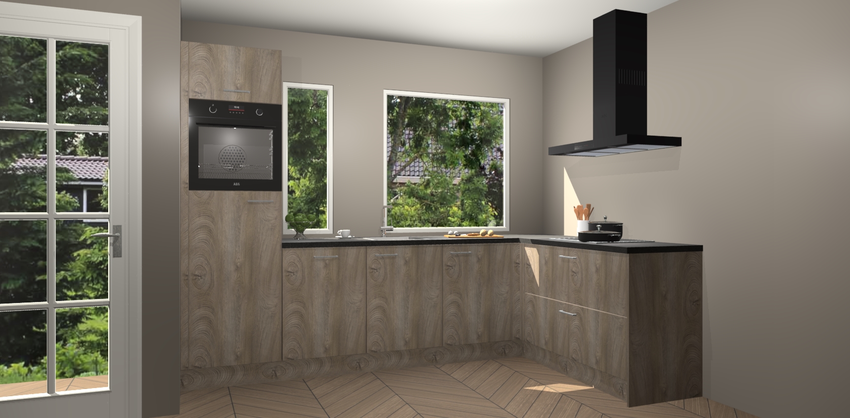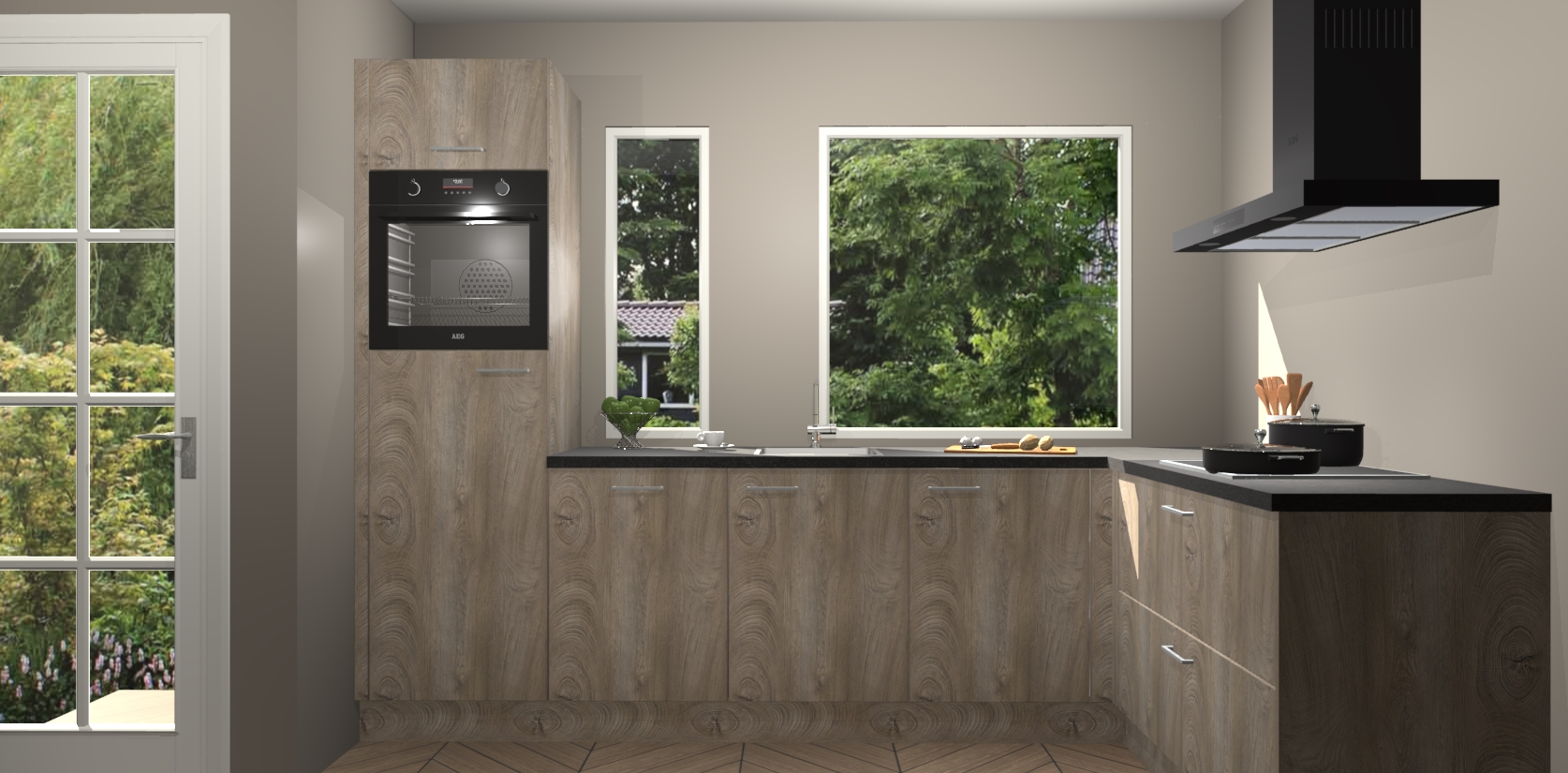 Deze complete keuken wordt geleverd met 5 inbouwapparaten: een oven, inductiekookplaat, afzuigkap, vaatwasser en koelkast. De toestellen kunnen na bestelling ook gemakkelijk worden opgewaardeerd naar AEG. Bovendien is elke deur in deze keuken voorzien van handige softclose technologie voor eenvoudig gebruik! Als een leuke toevoeging zit in deze keuken ook een carrousel, zo hoef je niet meer de hoek in duiken om iets te pakken.