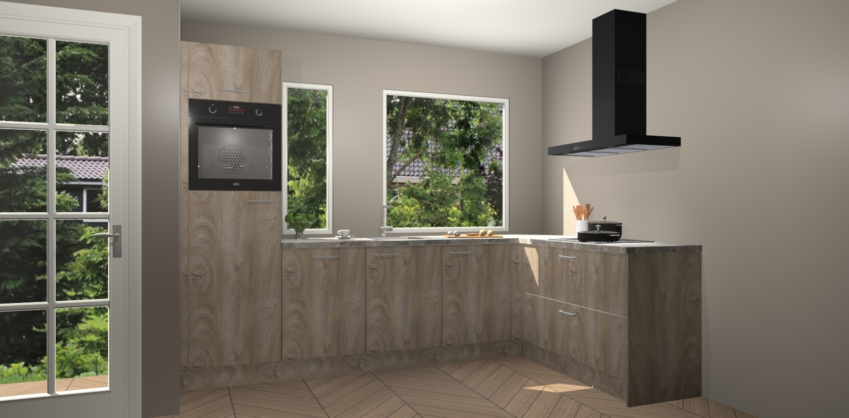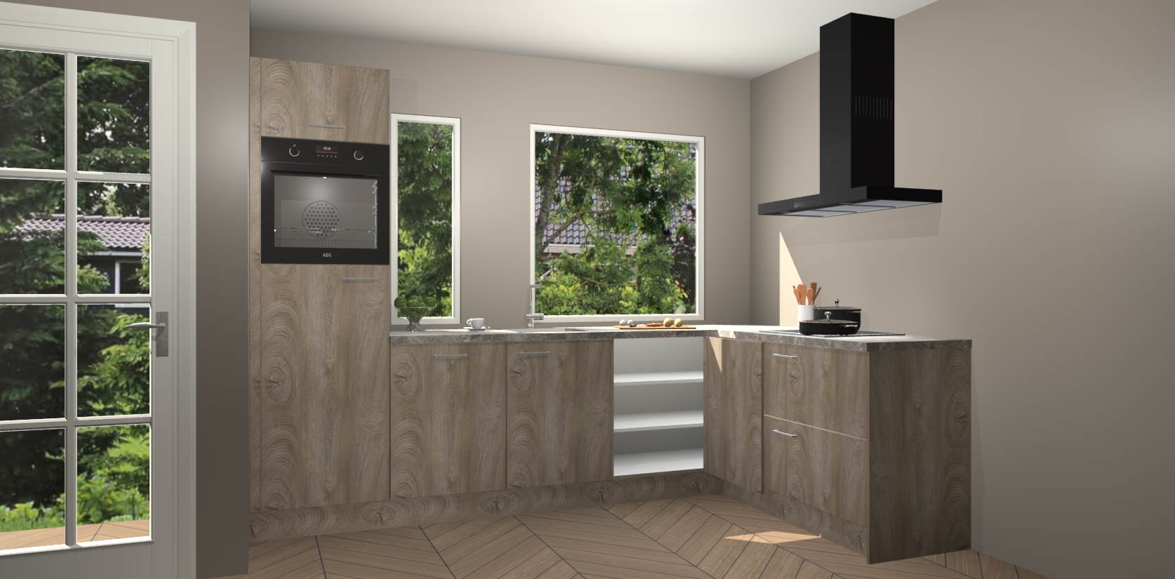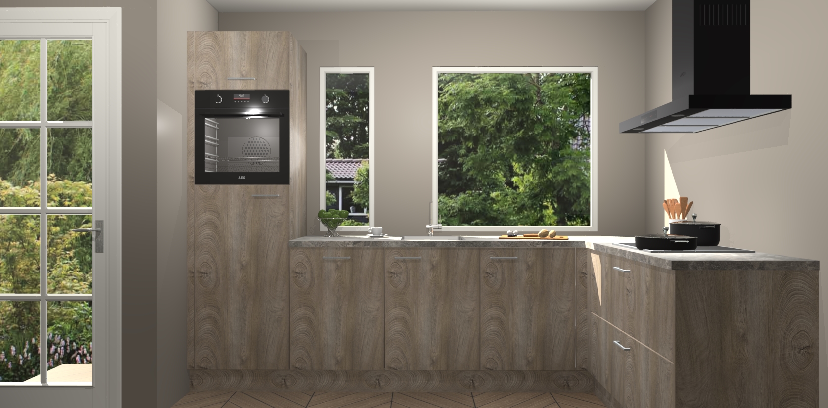 Deze complete keuken wordt geleverd met 5 inbouwapparaten: een oven, inductiekookplaat, afzuigkap, vaatwasser en koelkast. De toestellen kunnen na bestelling ook gemakkelijk worden opgewaardeerd naar AEG. Bovendien is elke deur in deze keuken voorzien van handige softclose technologie voor eenvoudig gebruik! Als een leuke toevoeging zit in deze keuken ook een carrousel, zo hoef je niet meer de hoek in duiken om iets te pakken.