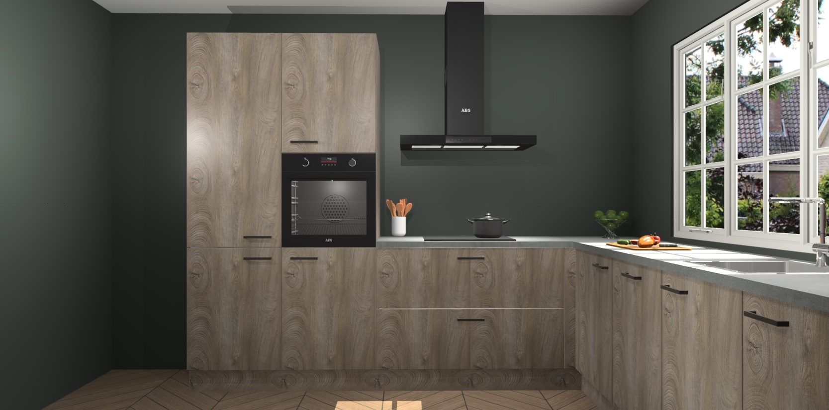 De keuken heeft veel opbergruimte, waardoor u alle ingrediënten gemakkelijk bereikbaar hebt staan. En daarnaast bevat deze volledig uitgeruste keuken ook 5 ingebouwde apparaten: een oven, inductiekookplaat, afzuigkap, vaatwasser en koelkast. Deze zijn heel eenvoudig na bestellen te upgraden naar AEG als u dit wilt. Bovendien zijn de softclose-kastdeuren ideaal; geef ze gewoon even een tikje en ze sluiten automatisch met geruisloze precisie.