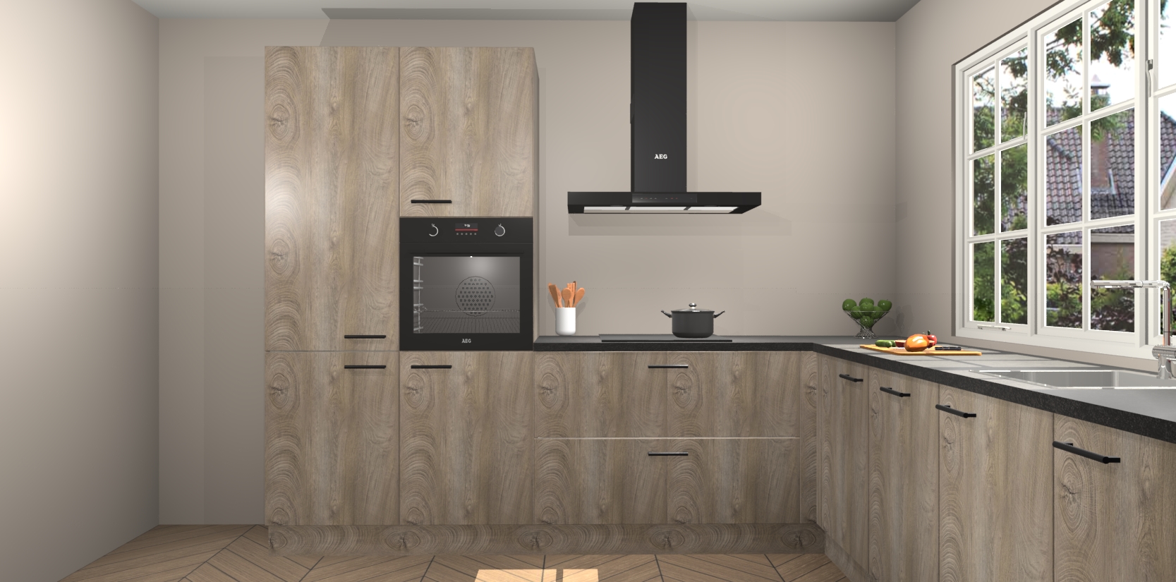 De keuken heeft veel opbergruimte, waardoor u alle ingrediënten gemakkelijk bereikbaar hebt staan. En daarnaast bevat deze volledig uitgeruste keuken ook 5 ingebouwde apparaten: een oven, inductiekookplaat, afzuigkap, vaatwasser en koelkast. Deze zijn heel eenvoudig na bestellen te upgraden naar AEG als u dit wilt. Bovendien zijn de softclose-kastdeuren ideaal; geef ze gewoon even een tikje en ze sluiten automatisch met geruisloze precisie.