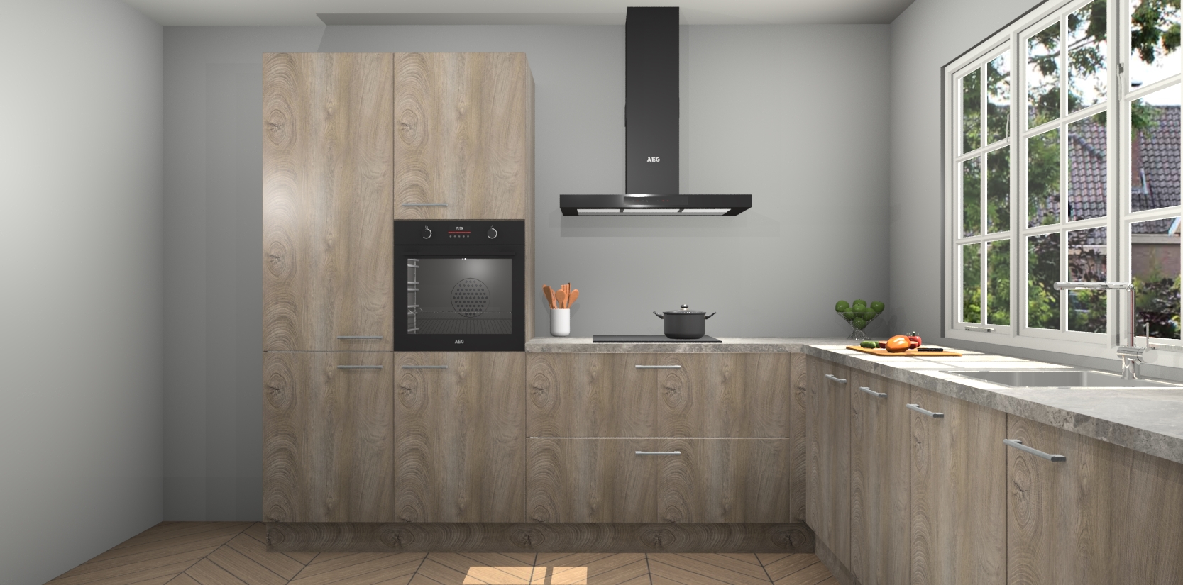 De keuken heeft veel opbergruimte, waardoor u alle ingrediënten gemakkelijk bereikbaar hebt staan. En daarnaast bevat deze volledig uitgeruste keuken ook 5 ingebouwde apparaten: een oven, inductiekookplaat, afzuigkap, vaatwasser en koelkast. Deze zijn heel eenvoudig na bestellen te upgraden naar AEG als u dit wilt. Bovendien zijn de softclose-kastdeuren ideaal; geef ze gewoon even een tikje en ze sluiten automatisch met geruisloze precisie.
