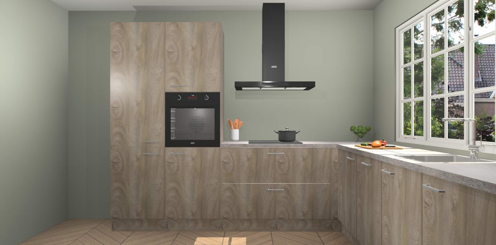De keuken heeft veel opbergruimte, waardoor u alle ingrediënten gemakkelijk bereikbaar hebt staan. En daarnaast bevat deze volledig uitgeruste keuken ook 5 ingebouwde apparaten: een oven, inductiekookplaat, afzuigkap, vaatwasser en koelkast. Deze zijn heel eenvoudig na bestellen te upgraden naar AEG als u dit wilt. Bovendien zijn de softclose-kastdeuren ideaal; geef ze gewoon even een tikje en ze sluiten automatisch met geruisloze precisie.