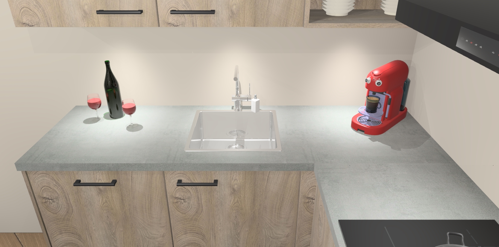 - Bij een hoekwerkblad zijn de hoeken in gevreesd en op maat gemaakt