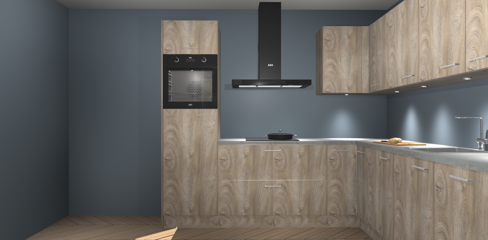 De Cantaro Eiken keuken Debar is uitgerust met vijf inbouwapparaten die elke kooktaak handig en efficiënt maken. Een oven, inductiekookplaat, afzuigkap, vaatwasser en koelkast zijn standaard, maar kunnen na bestelling eenvoudig worden geupgrade naar AEG. Profiteer vervolgens van de softclose deuren voor snelle toegang en geruisloze toegang.