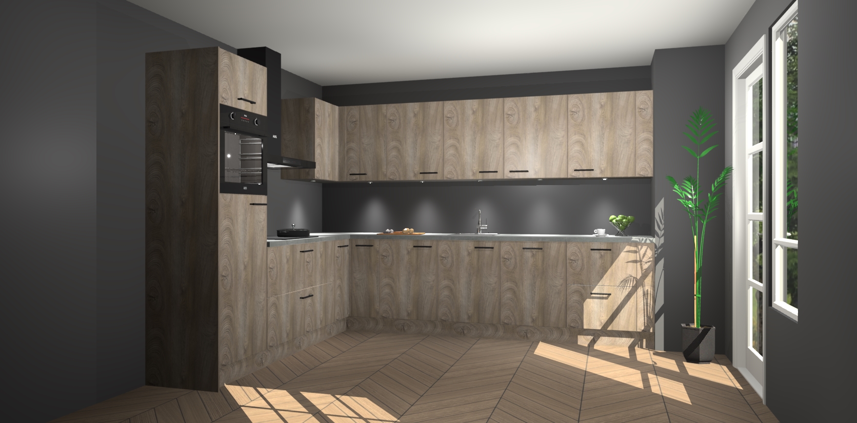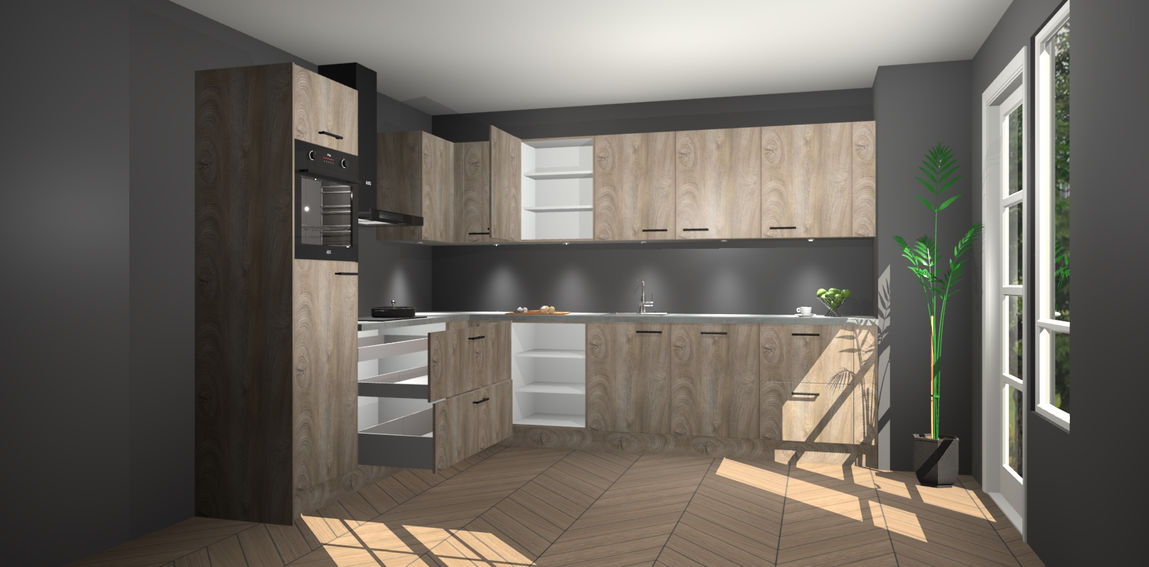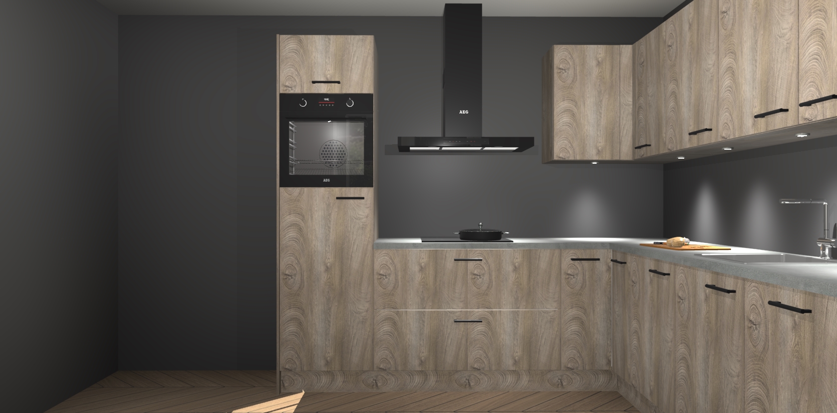 De Cantaro Eiken keuken Debar is uitgerust met vijf inbouwapparaten die elke kooktaak handig en efficiënt maken. Een oven, inductiekookplaat, afzuigkap, vaatwasser en koelkast zijn standaard, maar kunnen na bestelling eenvoudig worden geupgrade naar AEG. Profiteer vervolgens van de softclose deuren voor snelle toegang en geruisloze toegang.