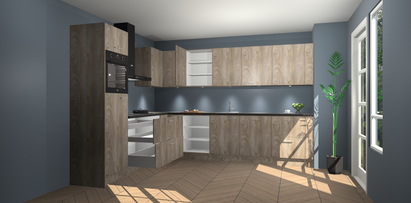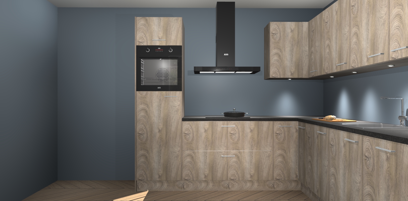 De Cantaro Eiken keuken Debar is uitgerust met vijf inbouwapparaten die elke kooktaak handig en efficiënt maken. Een oven, inductiekookplaat, afzuigkap, vaatwasser en koelkast zijn standaard, maar kunnen na bestelling eenvoudig worden geupgrade naar AEG. Profiteer vervolgens van de softclose deuren voor snelle toegang en geruisloze toegang.