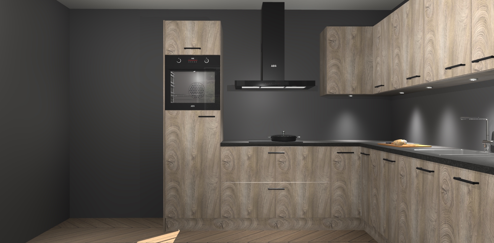 De Cantaro Eiken keuken Debar is uitgerust met vijf inbouwapparaten die elke kooktaak handig en efficiënt maken. Een oven, inductiekookplaat, afzuigkap, vaatwasser en koelkast zijn standaard, maar kunnen na bestelling eenvoudig worden geupgrade naar AEG. Profiteer vervolgens van de softclose deuren voor snelle toegang en geruisloze toegang.