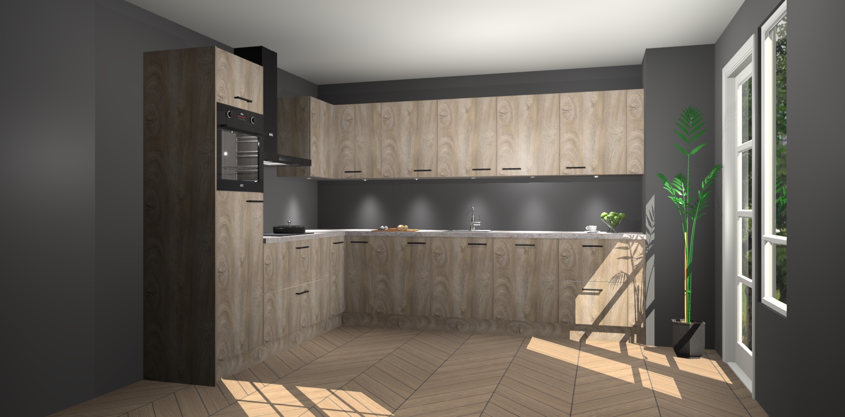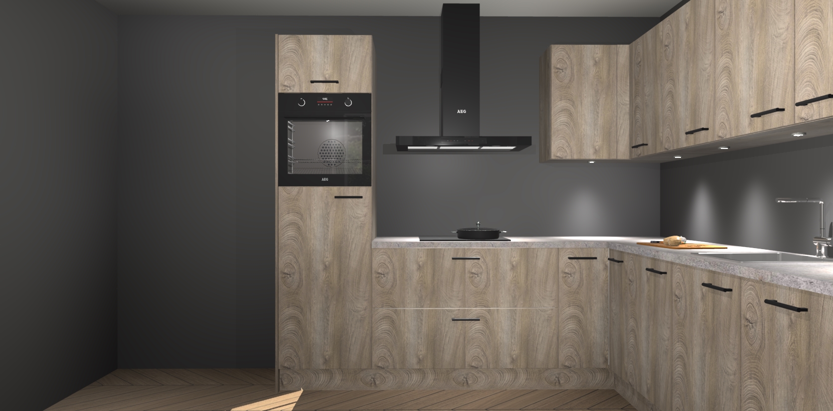 De Cantaro Eiken keuken Debar is uitgerust met vijf inbouwapparaten die elke kooktaak handig en efficiënt maken. Een oven, inductiekookplaat, afzuigkap, vaatwasser en koelkast zijn standaard, maar kunnen na bestelling eenvoudig worden geupgrade naar AEG. Profiteer vervolgens van de softclose deuren voor snelle toegang en geruisloze toegang.