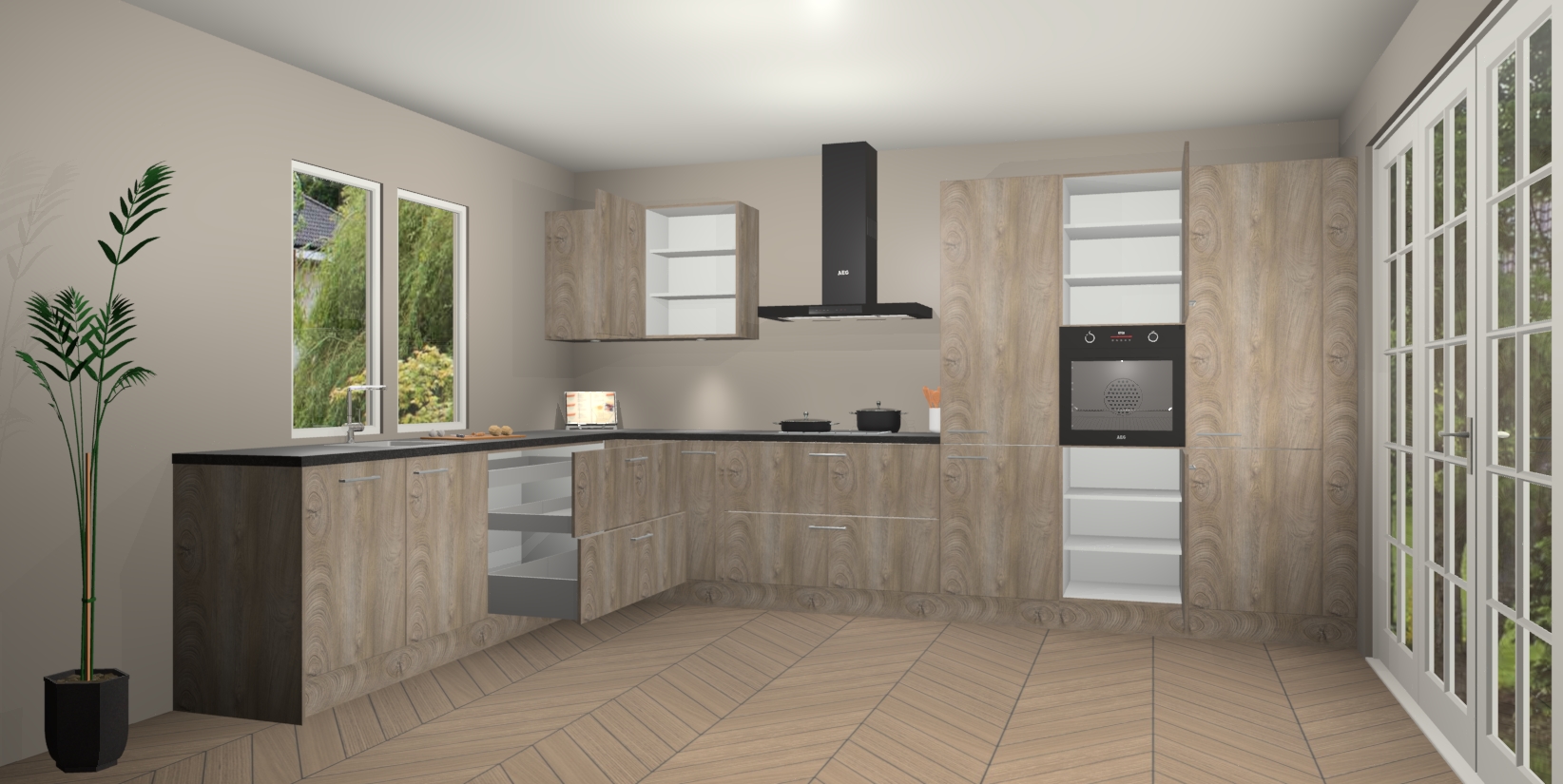 Kom dichtbij de perfecte keuken van uw dromen met de Cantaro Eiken keuken Debrecen. Met een prachtige houtlook en eigentijds ontwerp, straalt deze keuken warmte en sfeer uit. Of u nu liefhebber bent van traditionele of moderne stijlen, er is genoeg ruimte om aan al uw behoeften te voldoen.