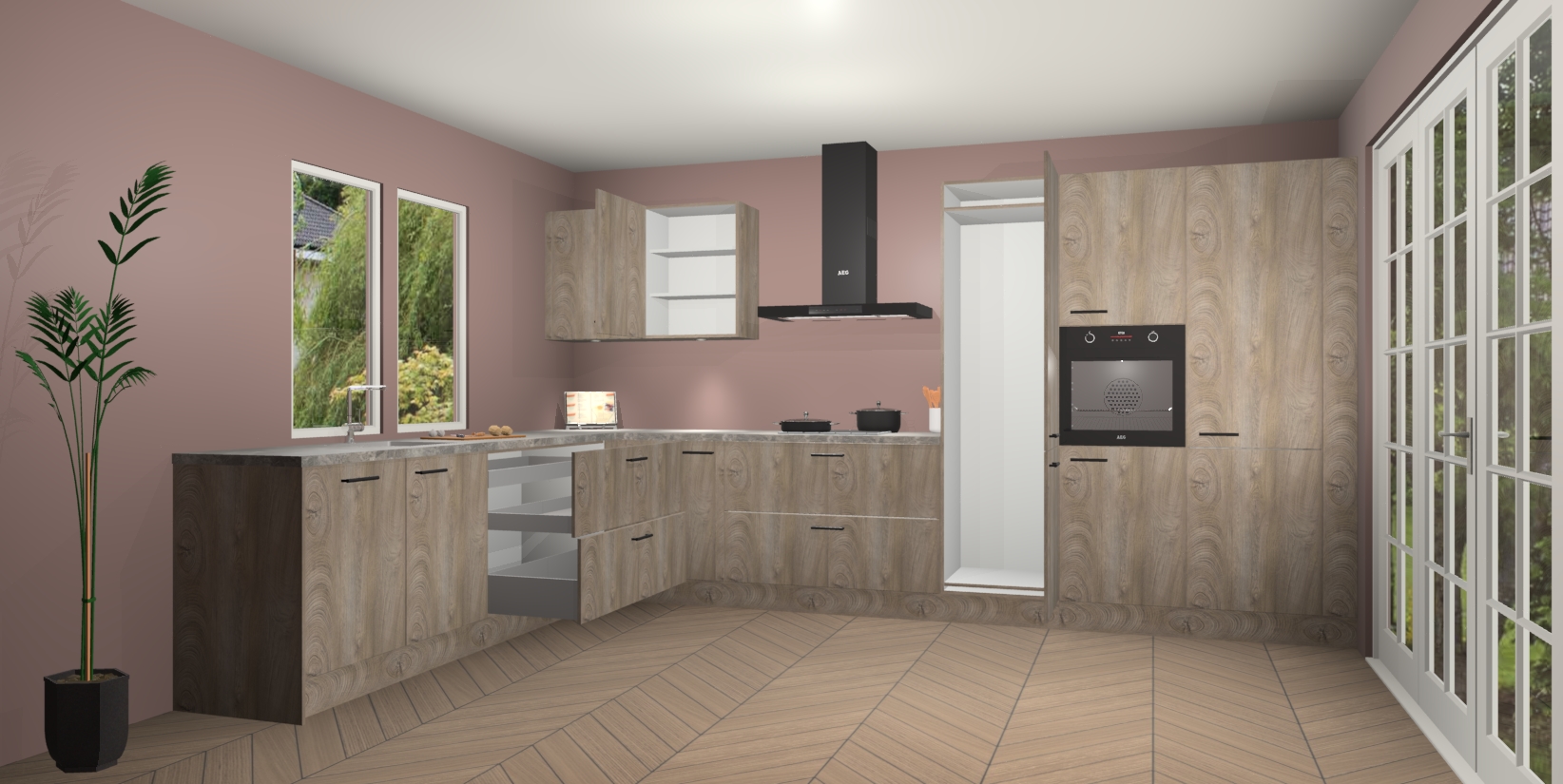 Inclusief plinten, stelpoten en werkblad