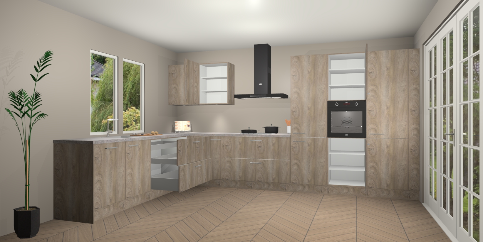 Kom dichtbij de perfecte keuken van uw dromen met de Cantaro Eiken keuken Debrecen. Met een prachtige houtlook en eigentijds ontwerp, straalt deze keuken warmte en sfeer uit. Of u nu liefhebber bent van traditionele of moderne stijlen, er is genoeg ruimte om aan al uw behoeften te voldoen.