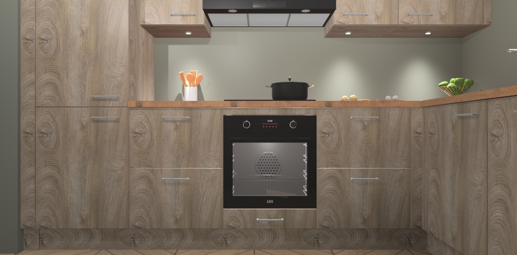 De Cantaro Eiken keuken Geneve is uitgerust met 5 inbouwapparaten - een oven, inductiekookplaat, afzuigkap, vaatwasser en koelkast - voor al uw kook- en bewaarbehoeftes. U kunt deze apparaten desgewenst eenvoudig upgraden naar AEG of de oven omruilen voor een combimagnetron na het plaatsen van uw bestelling. En met de soft close deuren, voldoende opbergruimte en kasten die voorgemonteerd worden geleverd, bent u in een mum van tijd klaar om heerlijke maaltijden te bereiden!