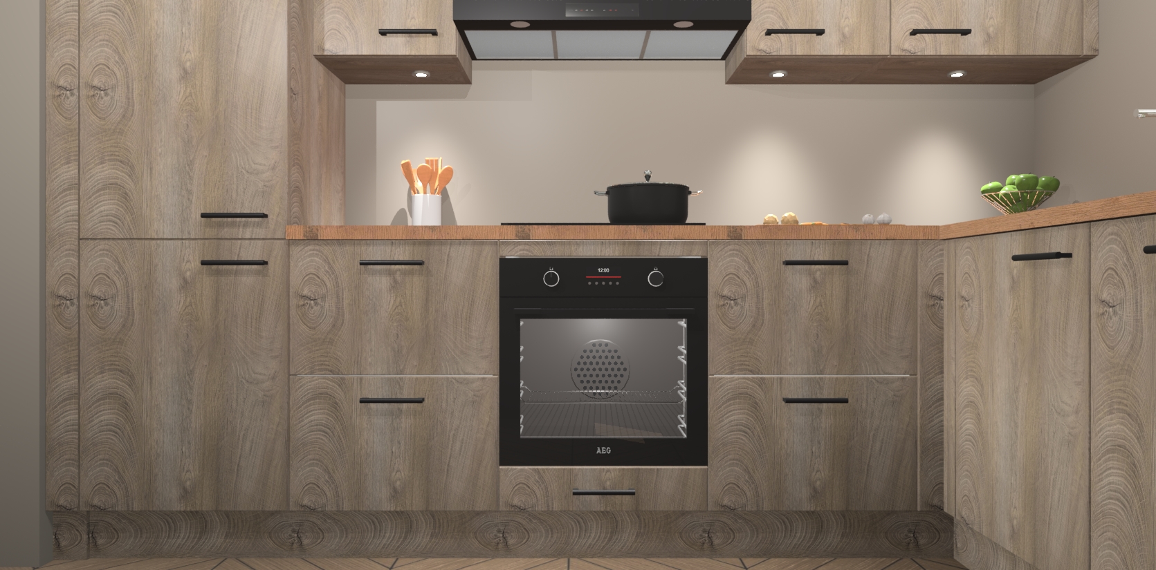 De Cantaro Eiken keuken Geneve is uitgerust met 5 inbouwapparaten - een oven, inductiekookplaat, afzuigkap, vaatwasser en koelkast - voor al uw kook- en bewaarbehoeftes. U kunt deze apparaten desgewenst eenvoudig upgraden naar AEG of de oven omruilen voor een combimagnetron na het plaatsen van uw bestelling. En met de soft close deuren, voldoende opbergruimte en kasten die voorgemonteerd worden geleverd, bent u in een mum van tijd klaar om heerlijke maaltijden te bereiden!