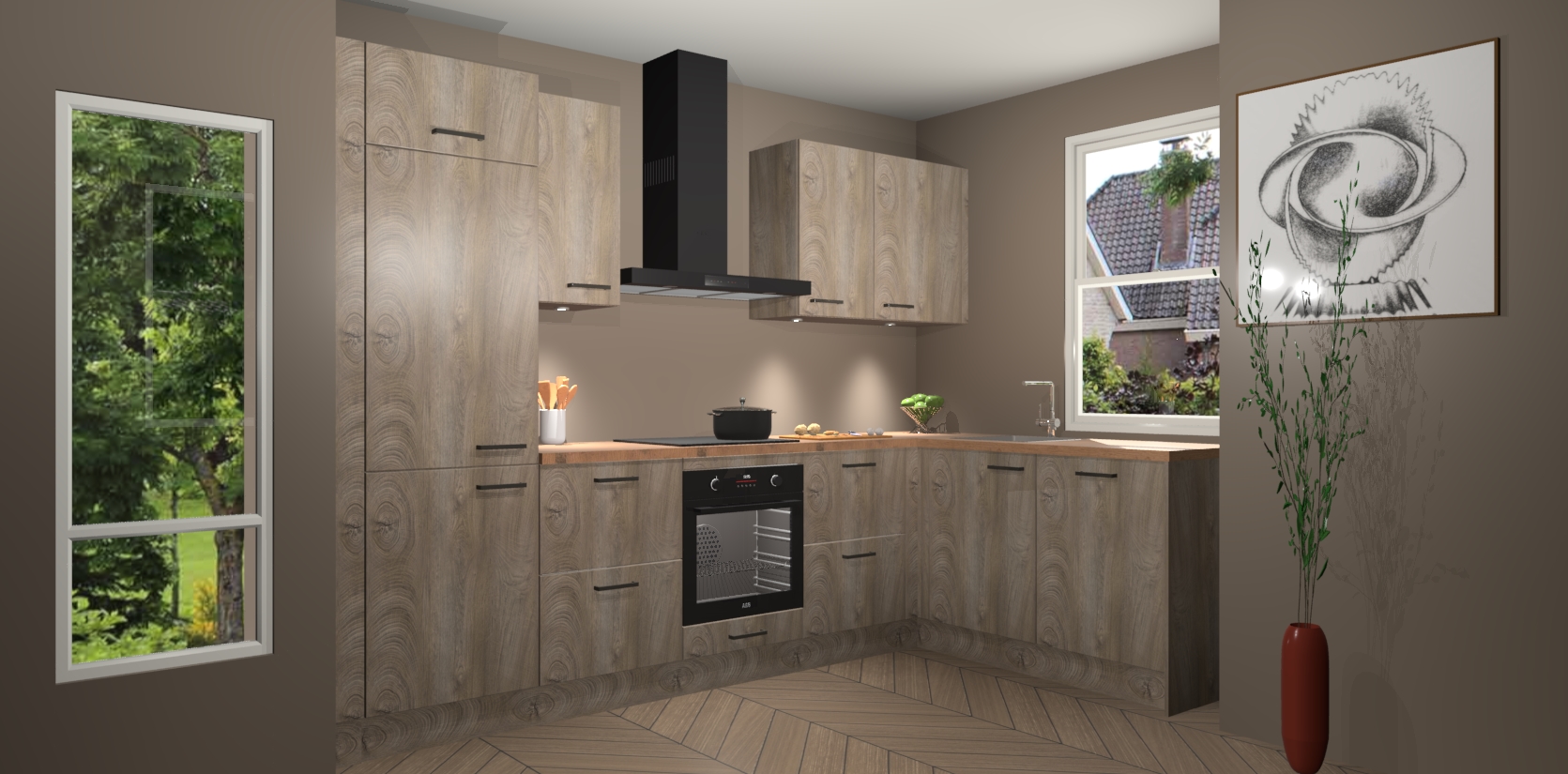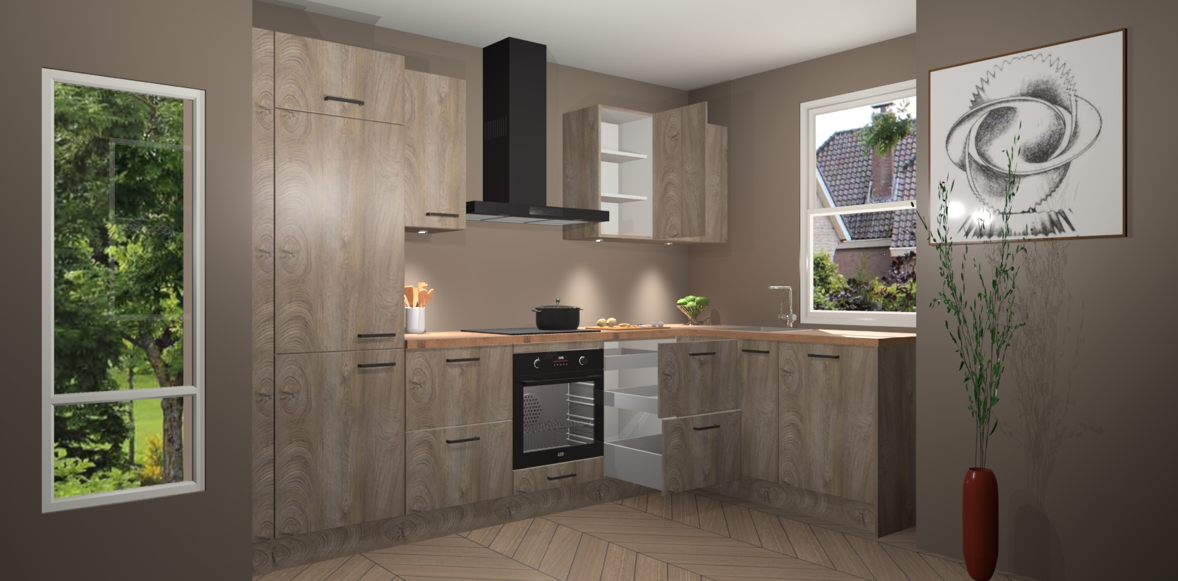 Bent u op zoek naar een moderne en tijdloze keuken die schoonheid in uw huis brengt? Zoek dan niet verder dan de Cantaro Eiken keuken Geneve - de perfecte keuken voor al uw wensen. Deze hoekkeuken biedt de hoogste Duitse kwaliteit voor een vaste lage prijs en is zeker een blikvanger in uw huis!