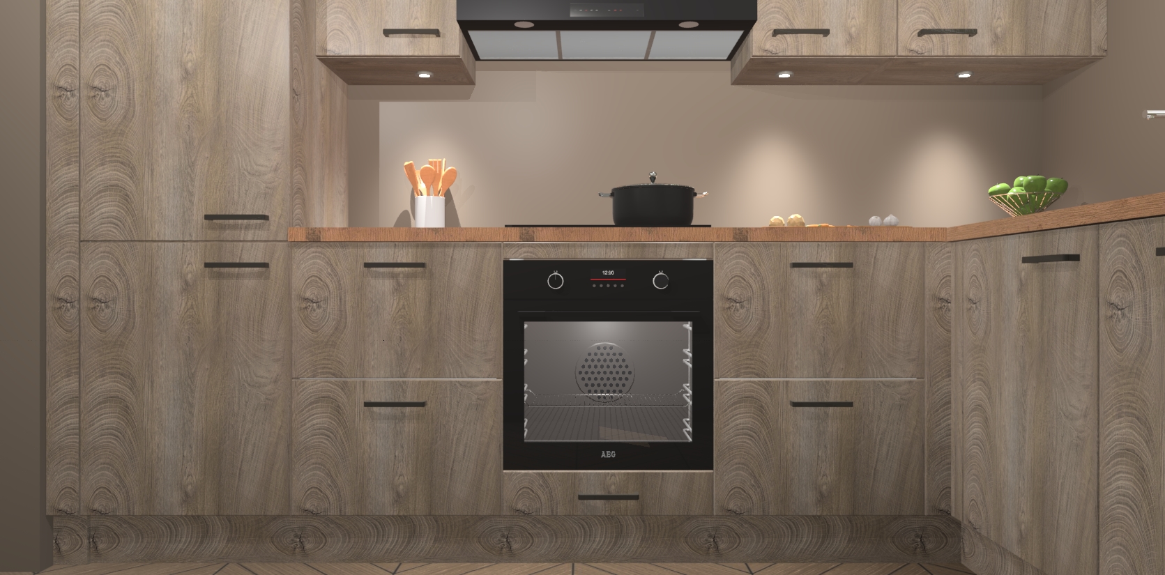 De Cantaro Eiken keuken Geneve is uitgerust met 5 inbouwapparaten - een oven, inductiekookplaat, afzuigkap, vaatwasser en koelkast - voor al uw kook- en bewaarbehoeftes. U kunt deze apparaten desgewenst eenvoudig upgraden naar AEG of de oven omruilen voor een combimagnetron na het plaatsen van uw bestelling. En met de soft close deuren, voldoende opbergruimte en kasten die voorgemonteerd worden geleverd, bent u in een mum van tijd klaar om heerlijke maaltijden te bereiden!