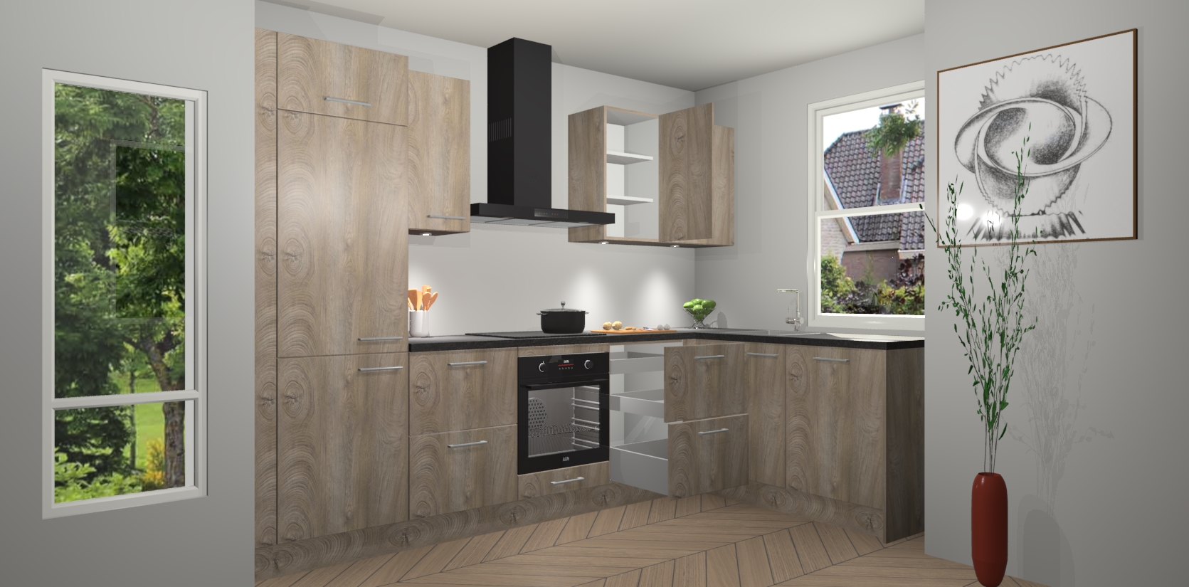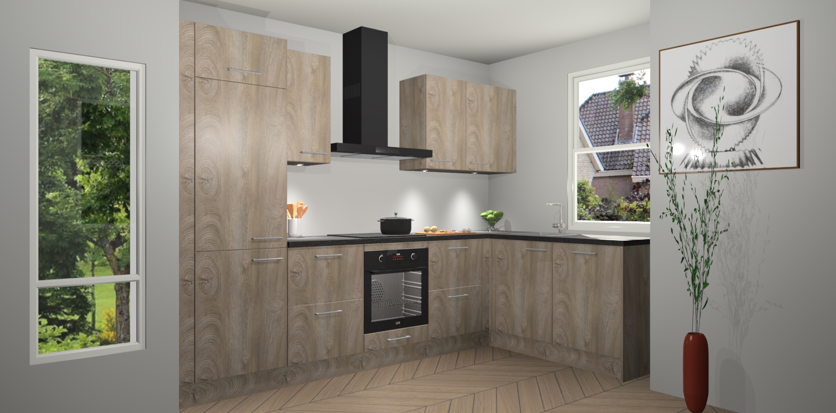 Bent u op zoek naar een moderne en tijdloze keuken die schoonheid in uw huis brengt? Zoek dan niet verder dan de Cantaro Eiken keuken Geneve - de perfecte keuken voor al uw wensen. Deze hoekkeuken biedt de hoogste Duitse kwaliteit voor een vaste lage prijs en is zeker een blikvanger in uw huis!