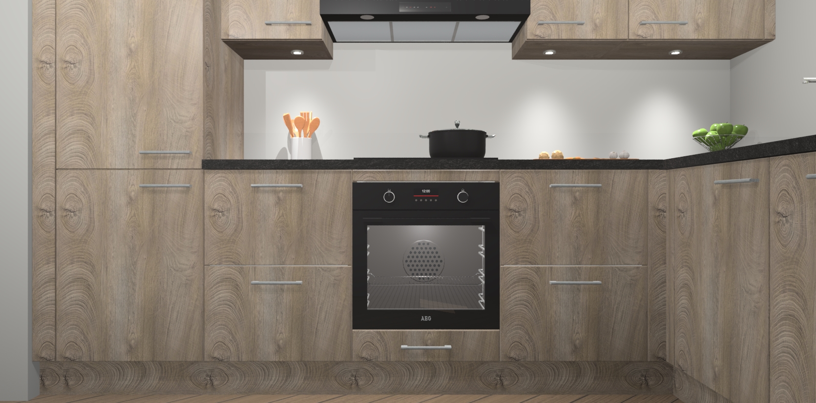De Cantaro Eiken keuken Geneve is uitgerust met 5 inbouwapparaten - een oven, inductiekookplaat, afzuigkap, vaatwasser en koelkast - voor al uw kook- en bewaarbehoeftes. U kunt deze apparaten desgewenst eenvoudig upgraden naar AEG of de oven omruilen voor een combimagnetron na het plaatsen van uw bestelling. En met de soft close deuren, voldoende opbergruimte en kasten die voorgemonteerd worden geleverd, bent u in een mum van tijd klaar om heerlijke maaltijden te bereiden!
