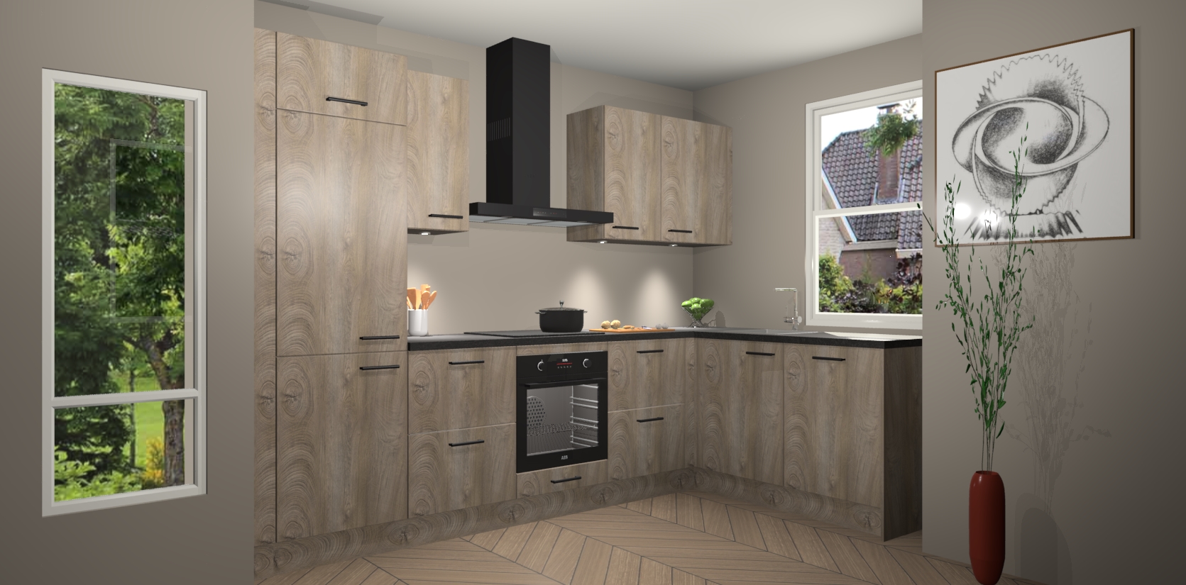 Bent u op zoek naar een moderne en tijdloze keuken die schoonheid in uw huis brengt? Zoek dan niet verder dan de Cantaro Eiken keuken Geneve - de perfecte keuken voor al uw wensen. Deze hoekkeuken biedt de hoogste Duitse kwaliteit voor een vaste lage prijs en is zeker een blikvanger in uw huis!
