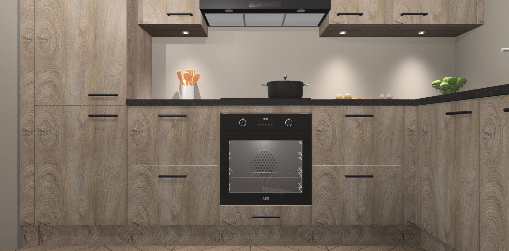 De Cantaro Eiken keuken Geneve is uitgerust met 5 inbouwapparaten - een oven, inductiekookplaat, afzuigkap, vaatwasser en koelkast - voor al uw kook- en bewaarbehoeftes. U kunt deze apparaten desgewenst eenvoudig upgraden naar AEG of de oven omruilen voor een combimagnetron na het plaatsen van uw bestelling. En met de soft close deuren, voldoende opbergruimte en kasten die voorgemonteerd worden geleverd, bent u in een mum van tijd klaar om heerlijke maaltijden te bereiden!