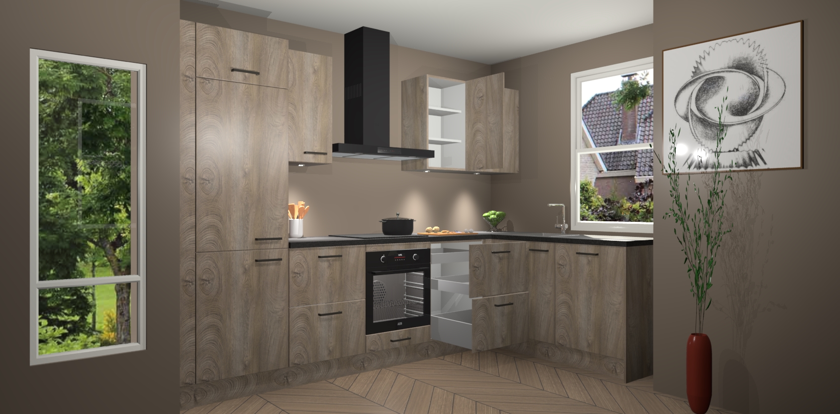 Bent u op zoek naar een moderne en tijdloze keuken die schoonheid in uw huis brengt? Zoek dan niet verder dan de Cantaro Eiken keuken Geneve - de perfecte keuken voor al uw wensen. Deze hoekkeuken biedt de hoogste Duitse kwaliteit voor een vaste lage prijs en is zeker een blikvanger in uw huis!