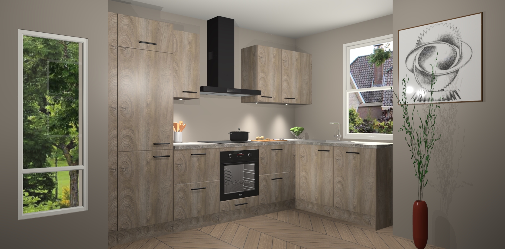 Bent u op zoek naar een moderne en tijdloze keuken die schoonheid in uw huis brengt? Zoek dan niet verder dan de Cantaro Eiken keuken Geneve - de perfecte keuken voor al uw wensen. Deze hoekkeuken biedt de hoogste Duitse kwaliteit voor een vaste lage prijs en is zeker een blikvanger in uw huis!