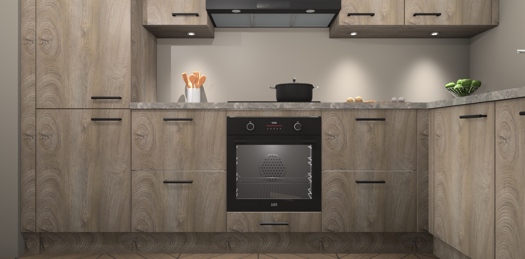De Cantaro Eiken keuken Geneve is uitgerust met 5 inbouwapparaten - een oven, inductiekookplaat, afzuigkap, vaatwasser en koelkast - voor al uw kook- en bewaarbehoeftes. U kunt deze apparaten desgewenst eenvoudig upgraden naar AEG of de oven omruilen voor een combimagnetron na het plaatsen van uw bestelling. En met de soft close deuren, voldoende opbergruimte en kasten die voorgemonteerd worden geleverd, bent u in een mum van tijd klaar om heerlijke maaltijden te bereiden!