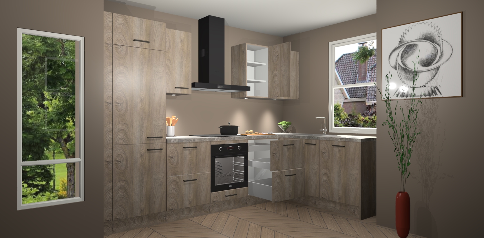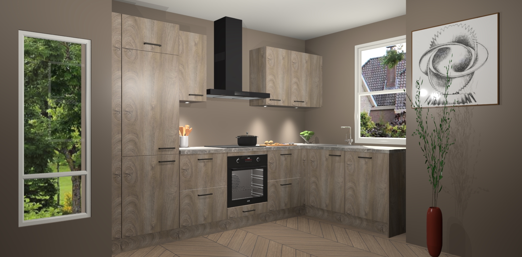 Bent u op zoek naar een moderne en tijdloze keuken die schoonheid in uw huis brengt? Zoek dan niet verder dan de Cantaro Eiken keuken Geneve - de perfecte keuken voor al uw wensen. Deze hoekkeuken biedt de hoogste Duitse kwaliteit voor een vaste lage prijs en is zeker een blikvanger in uw huis!