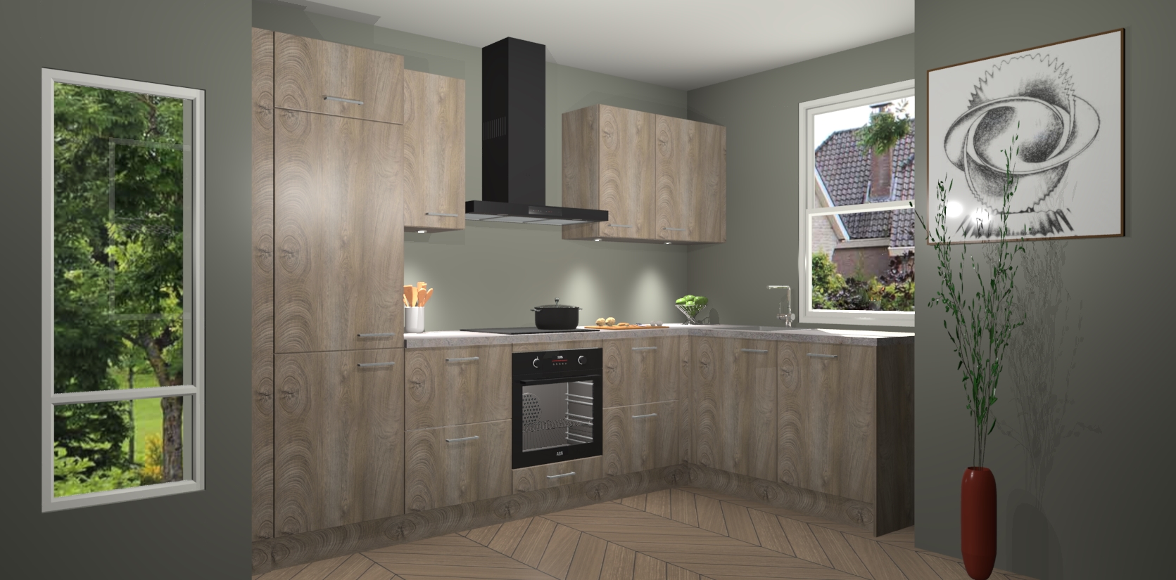 Bent u op zoek naar een moderne en tijdloze keuken die schoonheid in uw huis brengt? Zoek dan niet verder dan de Cantaro Eiken keuken Geneve - de perfecte keuken voor al uw wensen. Deze hoekkeuken biedt de hoogste Duitse kwaliteit voor een vaste lage prijs en is zeker een blikvanger in uw huis!