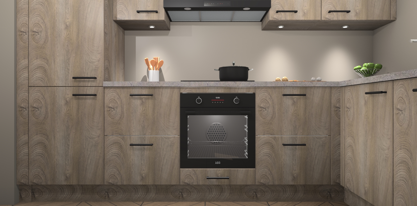 De Cantaro Eiken keuken Geneve is uitgerust met 5 inbouwapparaten - een oven, inductiekookplaat, afzuigkap, vaatwasser en koelkast - voor al uw kook- en bewaarbehoeftes. U kunt deze apparaten desgewenst eenvoudig upgraden naar AEG of de oven omruilen voor een combimagnetron na het plaatsen van uw bestelling. En met de soft close deuren, voldoende opbergruimte en kasten die voorgemonteerd worden geleverd, bent u in een mum van tijd klaar om heerlijke maaltijden te bereiden!