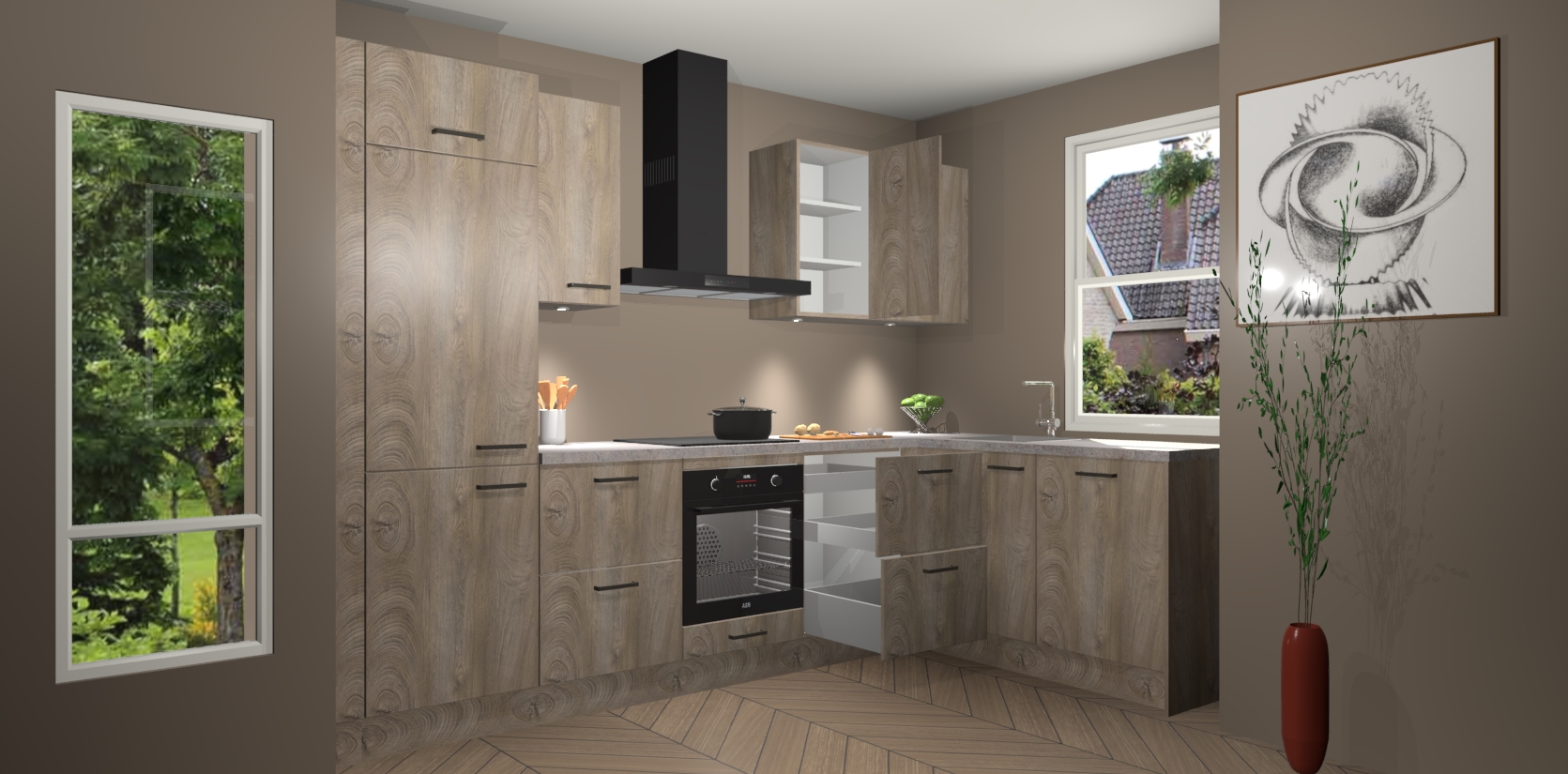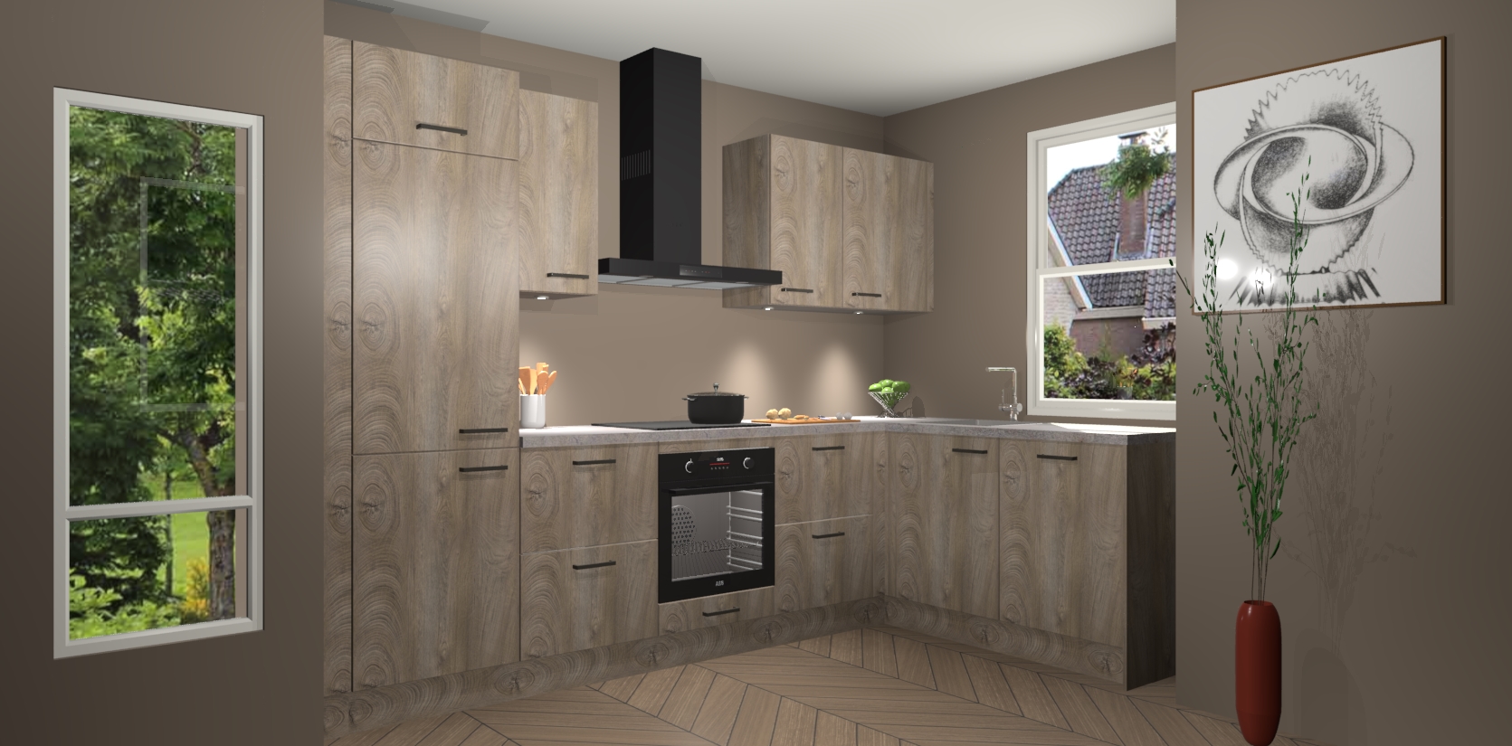 Bent u op zoek naar een moderne en tijdloze keuken die schoonheid in uw huis brengt? Zoek dan niet verder dan de Cantaro Eiken keuken Geneve - de perfecte keuken voor al uw wensen. Deze hoekkeuken biedt de hoogste Duitse kwaliteit voor een vaste lage prijs en is zeker een blikvanger in uw huis!