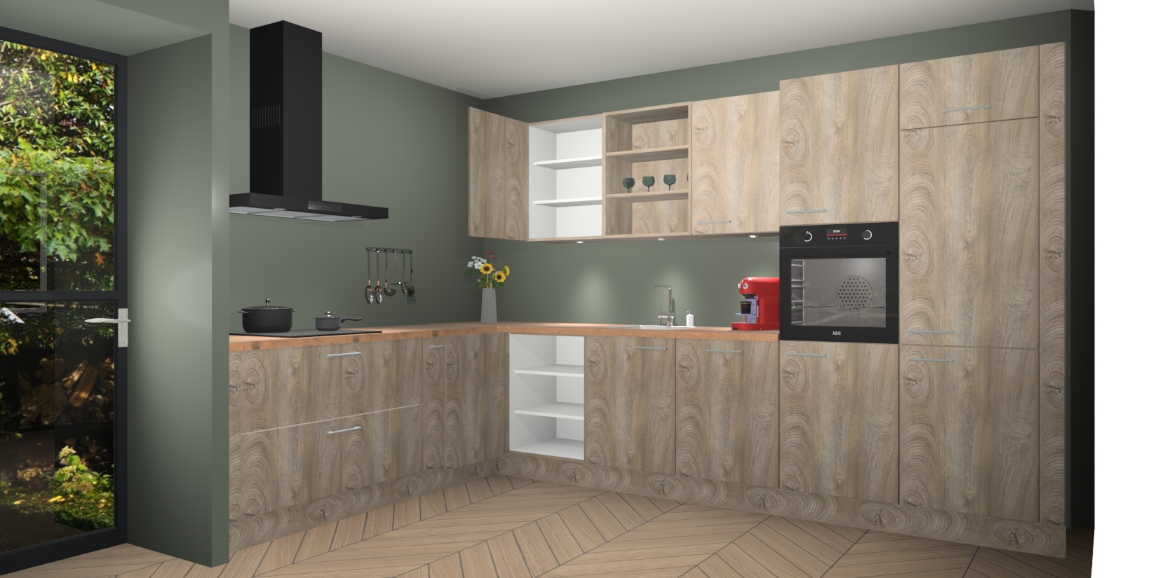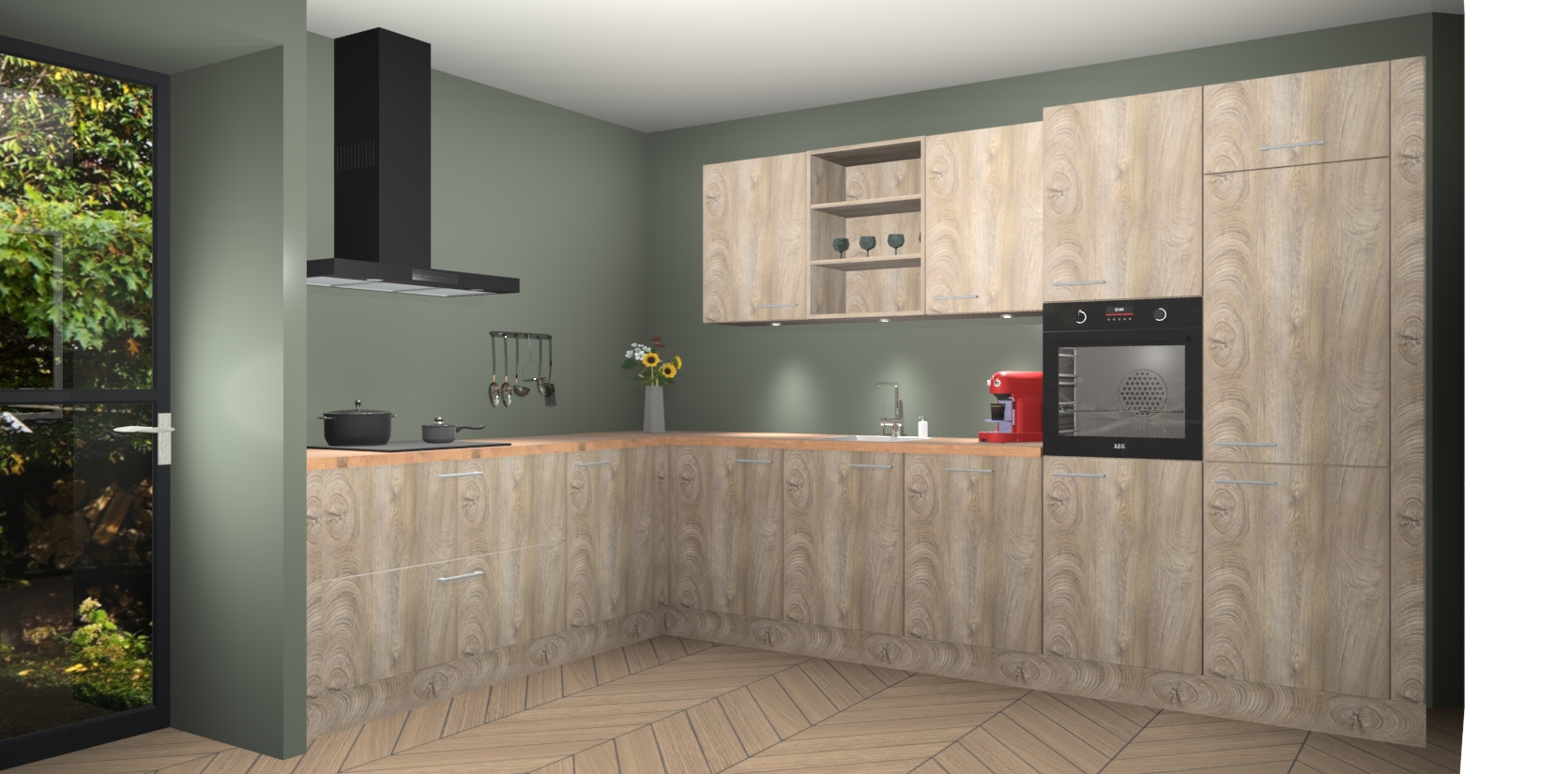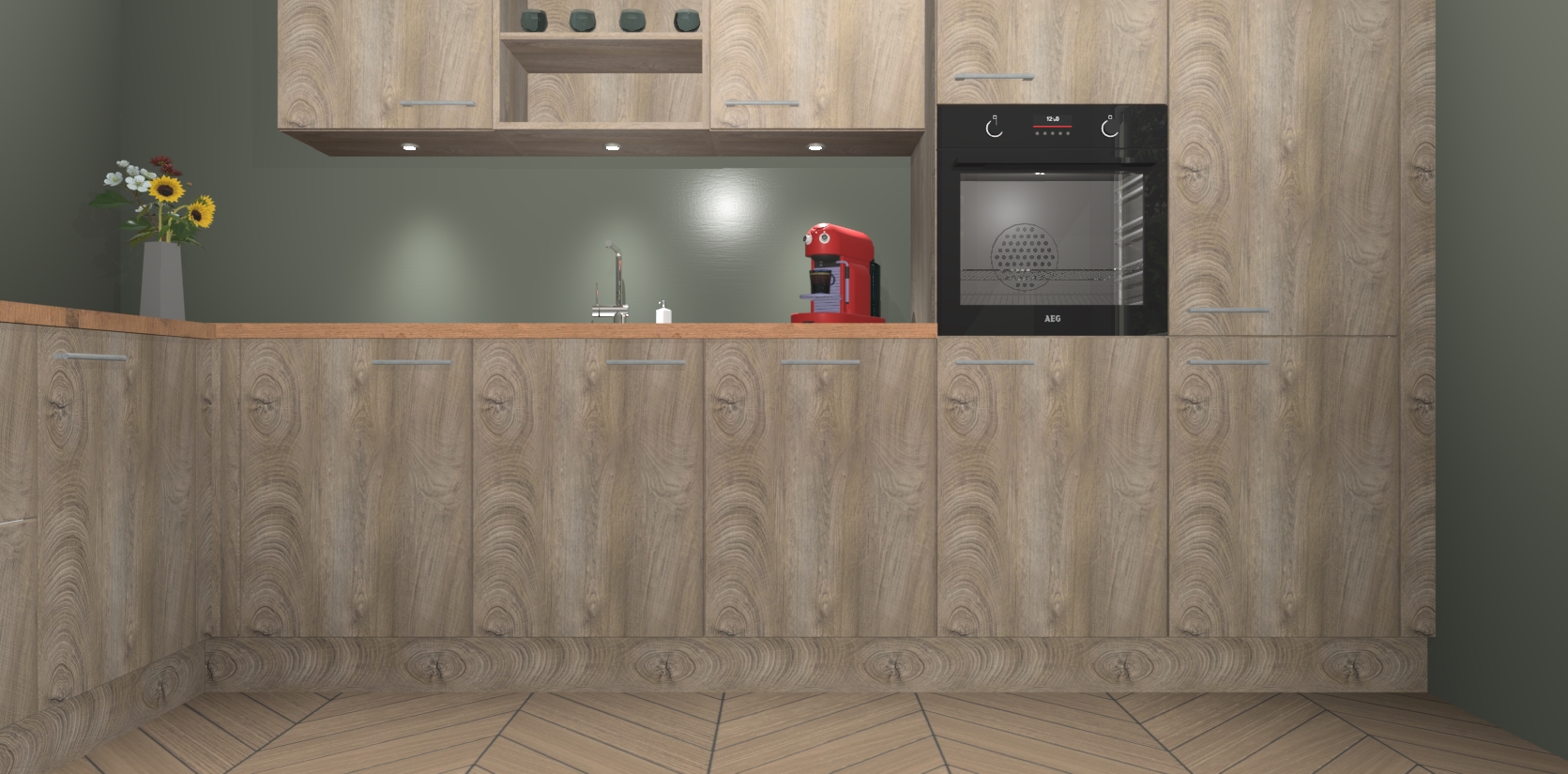 De Cantaro Eiken keuken Gotenburg is zo ontworpen dat u alle mogelijke vormen van opslagruimte kunt genieten. Bovendien heeft u meteen toegang tot vijf ingebouwde apparaten: een oven, inductiekookplaat, afzuigkap, vaatwasser en koelkast. Gewoon upgraden naar AEG na bestelling? Dit kan heel gemakkelijk worden geregeld. De deuren sluiten zacht dankzij zachtsluitende scharnieren en ze houden warmte vast terwijl ze uitzonderlijk stil blijven wanneer ze worden geopend of gesloten.