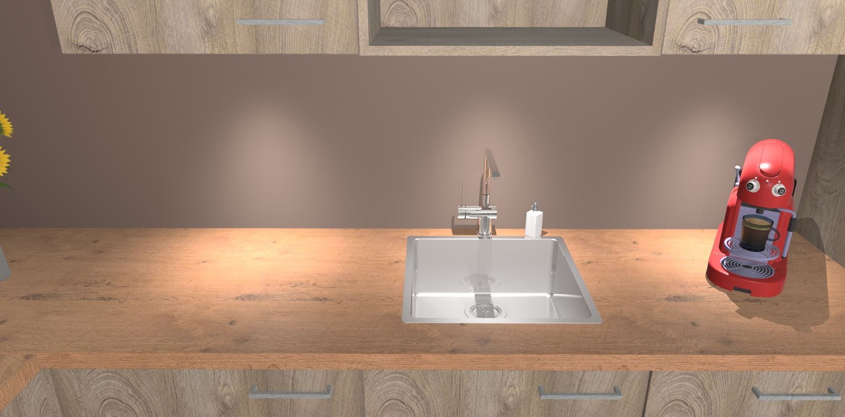 - De spoelbak is nog niet in gevreesd. Dit dient tijdens het werk gedaan te worden
