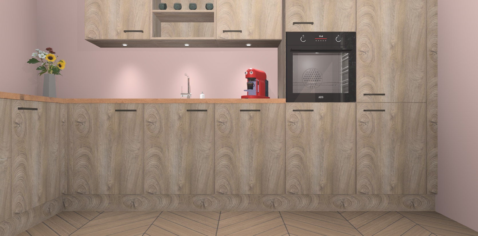 De Cantaro Eiken keuken Gotenburg is zo ontworpen dat u alle mogelijke vormen van opslagruimte kunt genieten. Bovendien heeft u meteen toegang tot vijf ingebouwde apparaten: een oven, inductiekookplaat, afzuigkap, vaatwasser en koelkast. Gewoon upgraden naar AEG na bestelling? Dit kan heel gemakkelijk worden geregeld. De deuren sluiten zacht dankzij zachtsluitende scharnieren en ze houden warmte vast terwijl ze uitzonderlijk stil blijven wanneer ze worden geopend of gesloten.