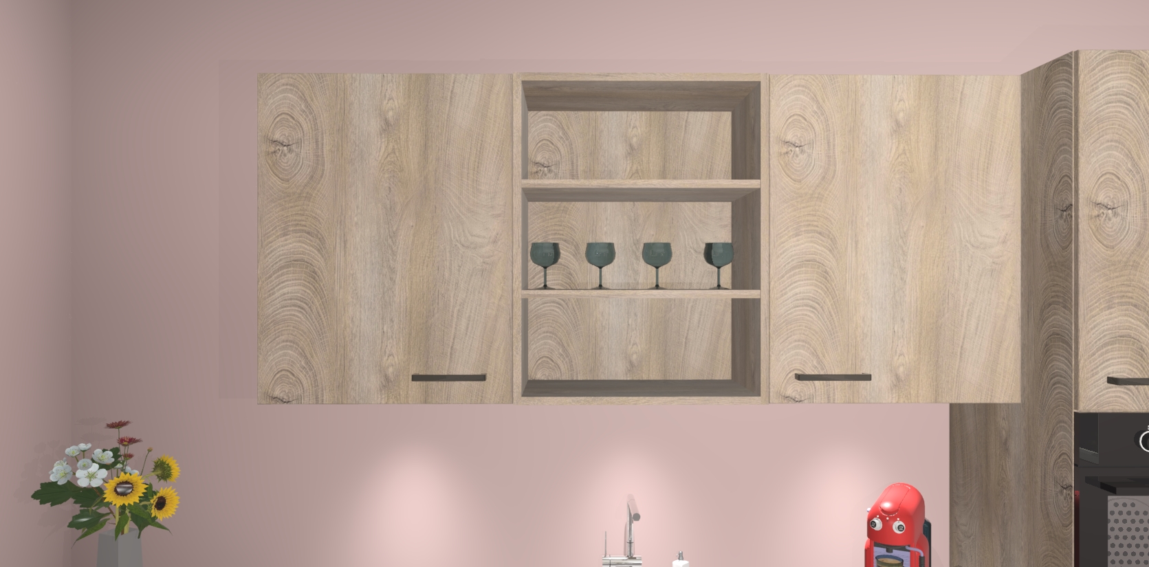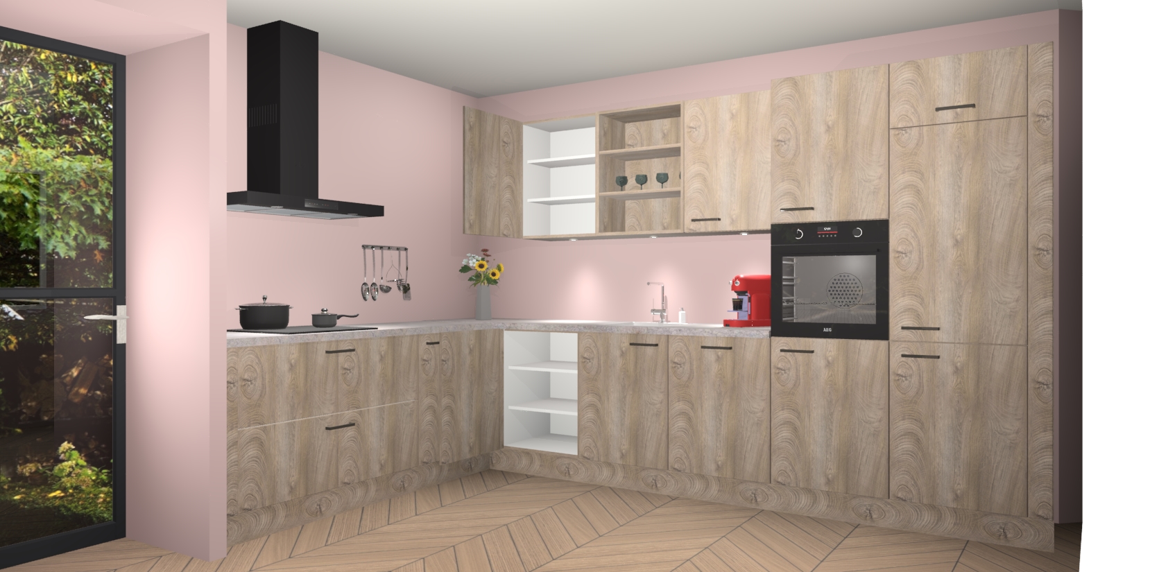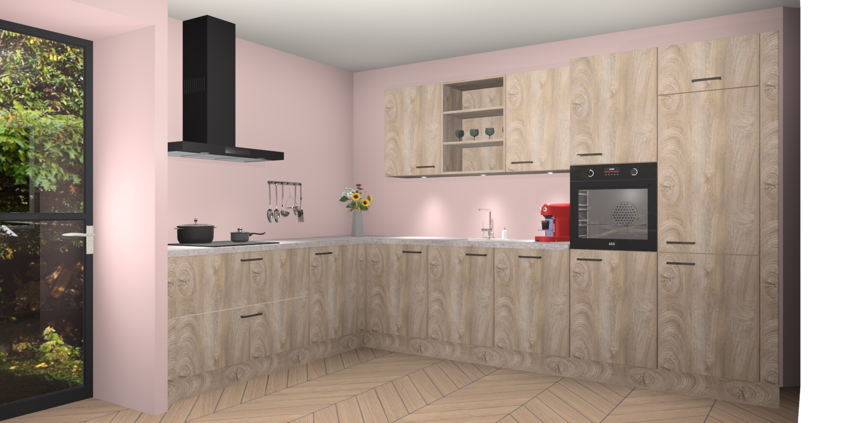 De Cantaro Eiken keuken Gotenburg is zo ontworpen dat u alle mogelijke vormen van opslagruimte kunt genieten. Bovendien heeft u meteen toegang tot vijf ingebouwde apparaten: een oven, inductiekookplaat, afzuigkap, vaatwasser en koelkast. Gewoon upgraden naar AEG na bestelling? Dit kan heel gemakkelijk worden geregeld. De deuren sluiten zacht dankzij zachtsluitende scharnieren en ze houden warmte vast terwijl ze uitzonderlijk stil blijven wanneer ze worden geopend of gesloten.