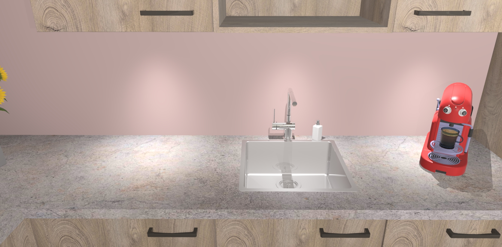- De spoelbak is nog niet in gevreesd. Dit dient tijdens het werk gedaan te worden