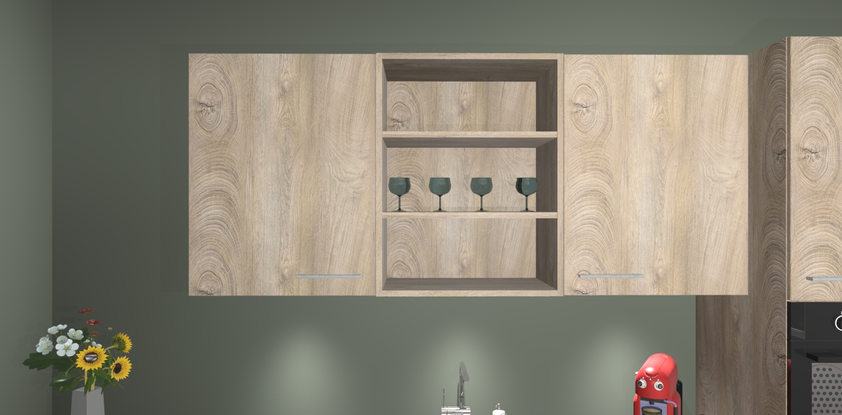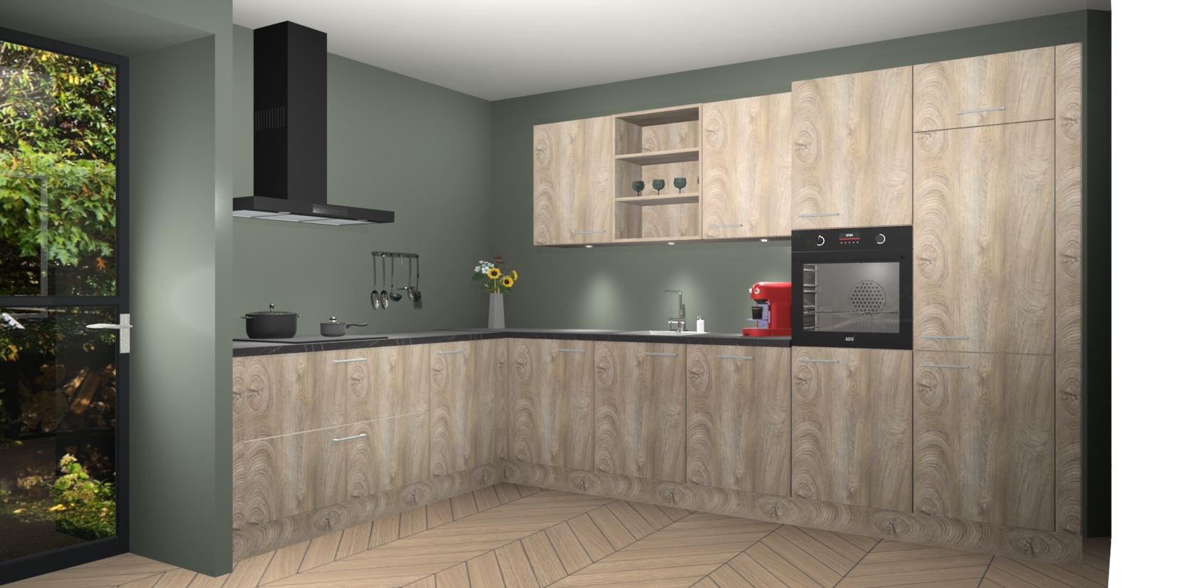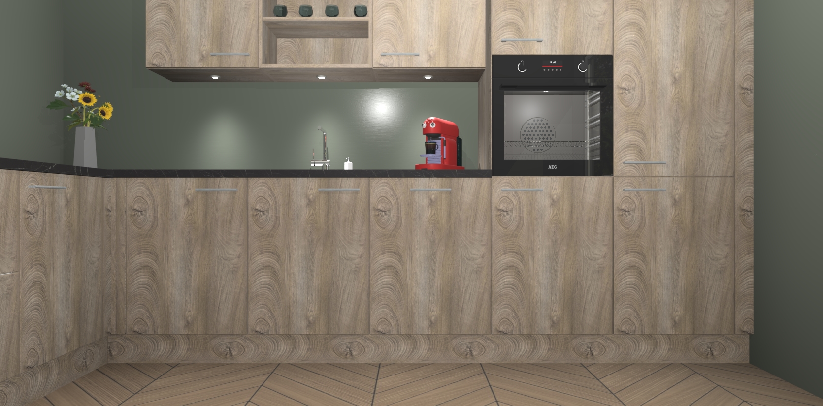 De Cantaro Eiken keuken Gotenburg is zo ontworpen dat u alle mogelijke vormen van opslagruimte kunt genieten. Bovendien heeft u meteen toegang tot vijf ingebouwde apparaten: een oven, inductiekookplaat, afzuigkap, vaatwasser en koelkast. Gewoon upgraden naar AEG na bestelling? Dit kan heel gemakkelijk worden geregeld. De deuren sluiten zacht dankzij zachtsluitende scharnieren en ze houden warmte vast terwijl ze uitzonderlijk stil blijven wanneer ze worden geopend of gesloten.